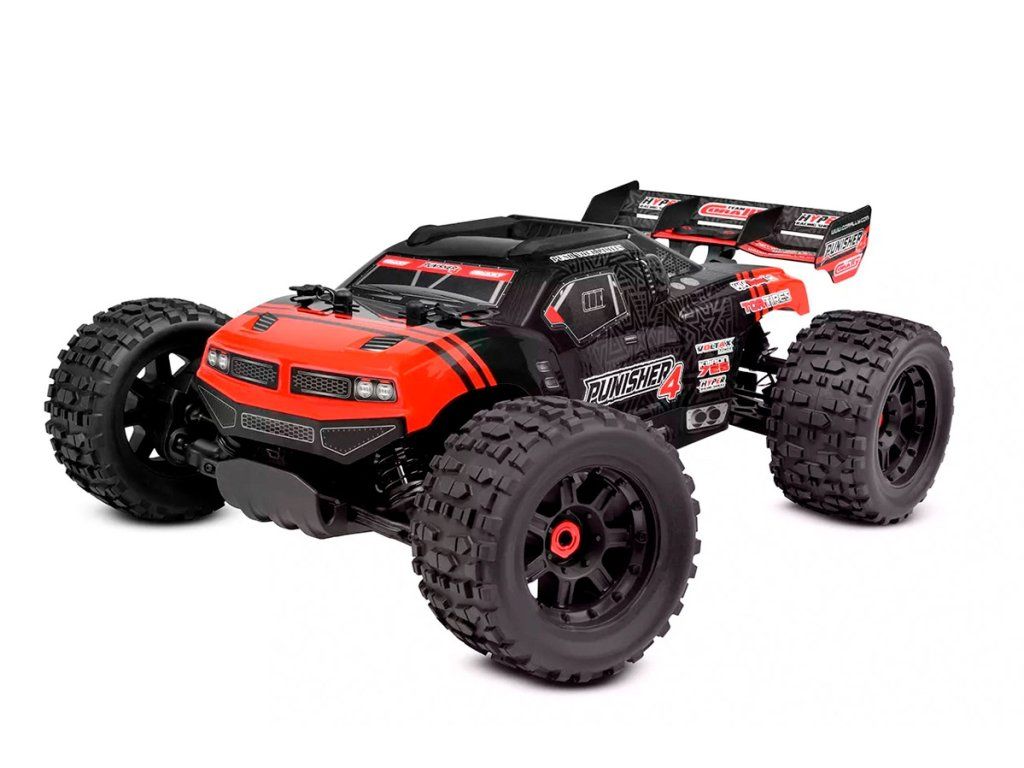Punisher4, RC monster truck XL4S, je navržen pro začátečníky i zkušené bashery. Je postaven na stejném podvozku jako model Syncro4 a přináší inovativní funkce za bezkonkurenční cenu. Nové velkoobjemové kompozitové tlumiče, extrémně odolné kompozitové parohy tlumičů a zesílený systém výztuh podvozku jsou příkladem dokonalé kombinace odolnosti a výkonu. Díky výraznému hliníkovému podvozku v titanové barvě, ochranným deskám, novému wheelie kolečku a aerodynamickému křídlu Punisher4 nově definuje off-road styl.