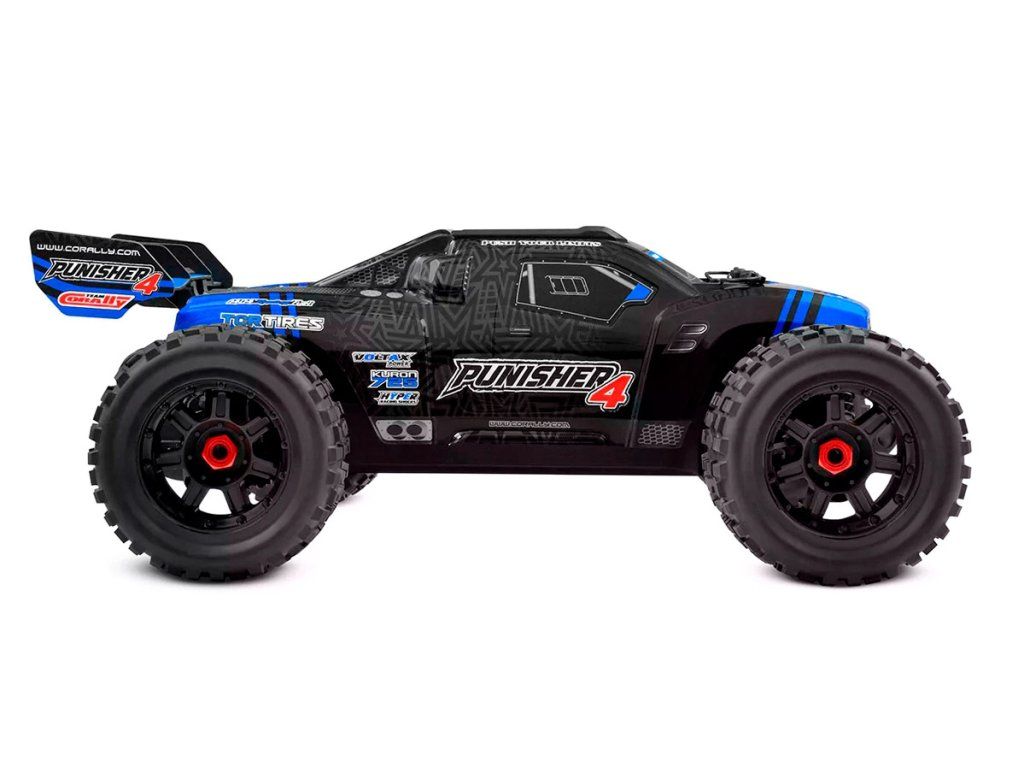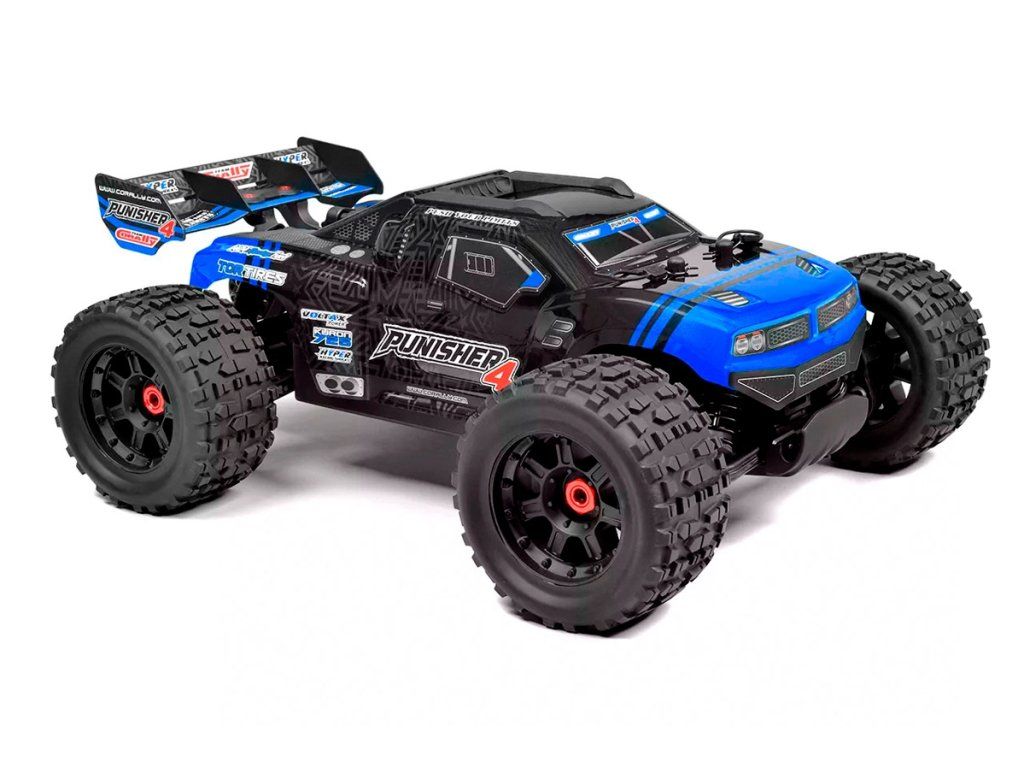 Punisher4, RC monster truck XL4S, je navržen pro začátečníky i zkušené bashery. Je postaven na stejném podvozku jako model Syncro4 a přináší inovativní funkce za bezkonkurenční cenu. Nové velkoobjemové kompozitové tlumiče, extrémně odolné kompozitové parohy tlumičů a zesílený systém výztuh podvozku jsou příkladem dokonalé kombinace odolnosti a výkonu. Díky výraznému hliníkovému podvozku v titanové barvě, ochranným deskám, novému wheelie kolečku a aerodynamickému křídlu Punisher4 nově definuje off-road styl.