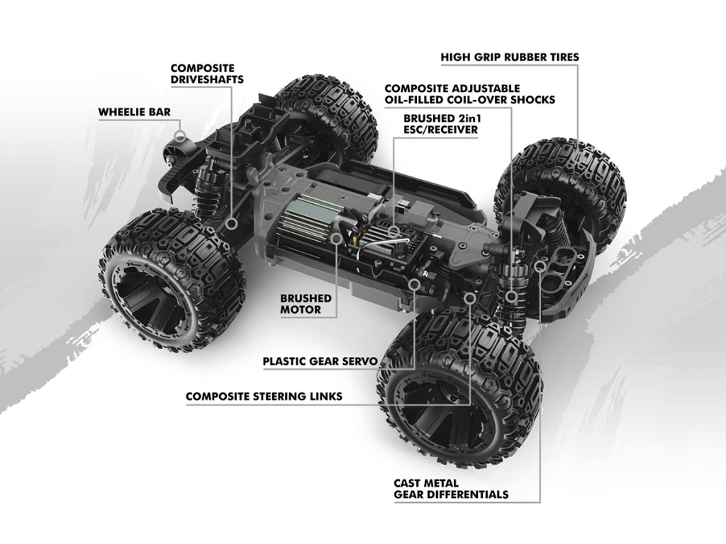 Tento monster truck v měřítku 1:16 je určen pro řidiče, kteří touží po velkém výkonu v kompaktním balení, které s sebou zabalíte kamkoli. Ať už teprve objevujete vzrušení z RC bashingu, nebo jste zkušený lovec adrenalinu hledající seriózní výkon, QBit je navržen právě pro vás.