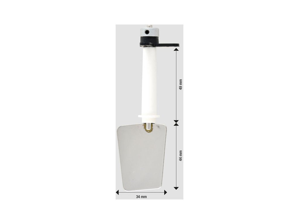 Raboesch kormidlo kompletní kovové o rozměru listu 35x37mm. Má průchozí vložku do trupu a dvojitou řídící páku z nylonu. Kroužek s červíkem na hřídeli usnadňuje instalaci do trupu lodi.