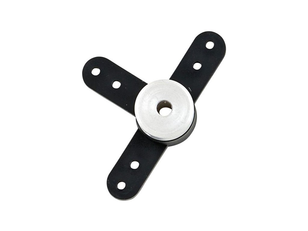 Raboesch páka kormidla T z nylonu s hliníkovým kroužkem pro hřídel 3mm a červíkem M3. Výška cca 11mm, celková šířka 39,5mm, celková hloubka 26mm.