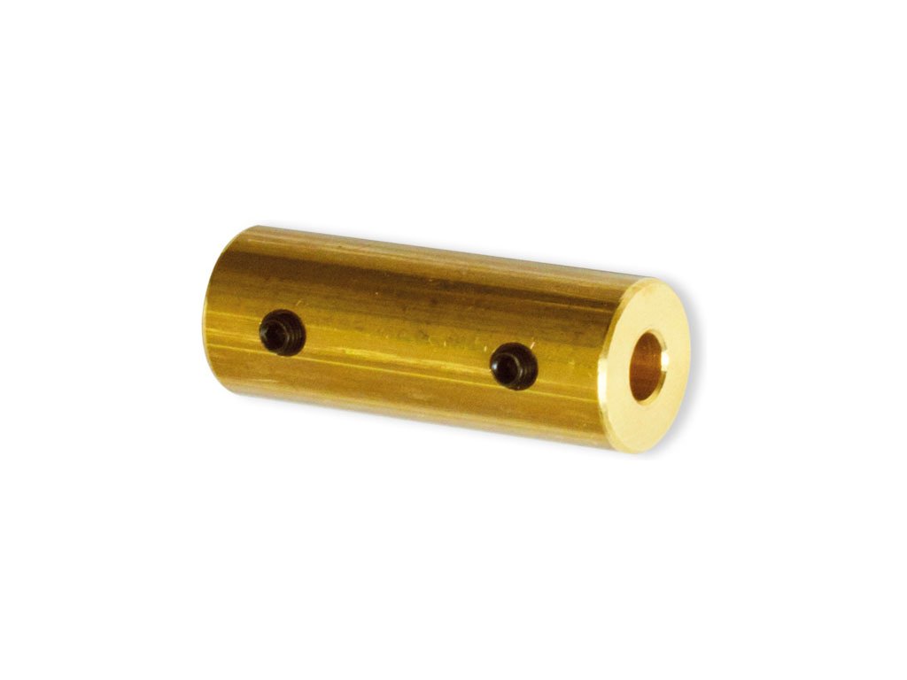 Mosazná spojka dvou hřídelí o průměru 3mm. Délka celková 20mm.