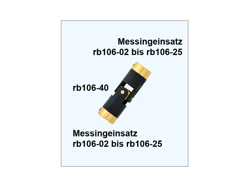 Raboesch vložka mosazná s otvorem 5mm a pojistným červíkem pro středový díl kardanu KR-rb106-40. Vložka se tisícihranem vloží do plastového těla kardanu, vložky lze libovolně kombinovat podle potřeby.