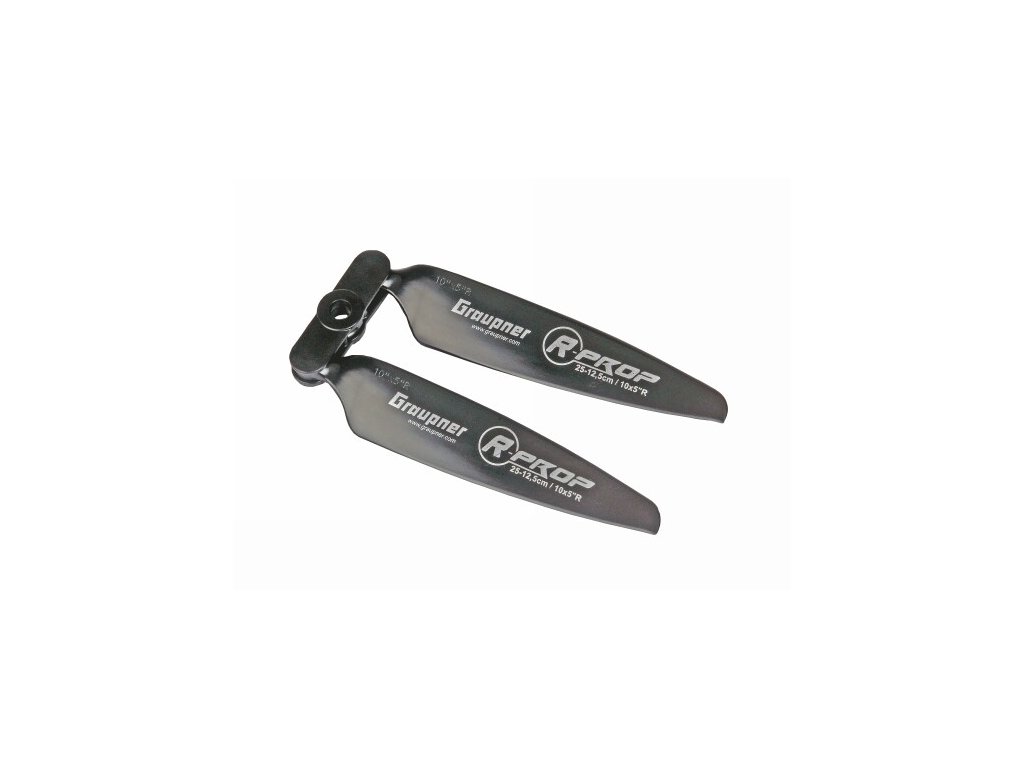 Pravotočivá dvoulistá sklopná plastová vrtule plněná skelnými vlákny, rozměr a stoupání 10/5 palců, 25/12,5mm, vrtání 5 a 6mm, váha 13 g.