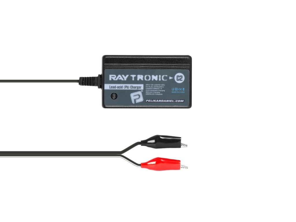 Nabíječ Raytronic C2 je velmi jednoduchý „krabičkový" nabíječ se síťovým napájením pro nabíjení olověných akumulátorů se jmenovitým napětím 2, 6 a 12 V. Nabíjecí proud 0,2–1 A spolehlivě vyhoví pro většinu Pb akumulátorů používaných v rekreačních modelech lodí, pro žhavení svíček a startování spalovacích motorů apod. s kapacitou zhruba v rozmezí 2–20 Ah.