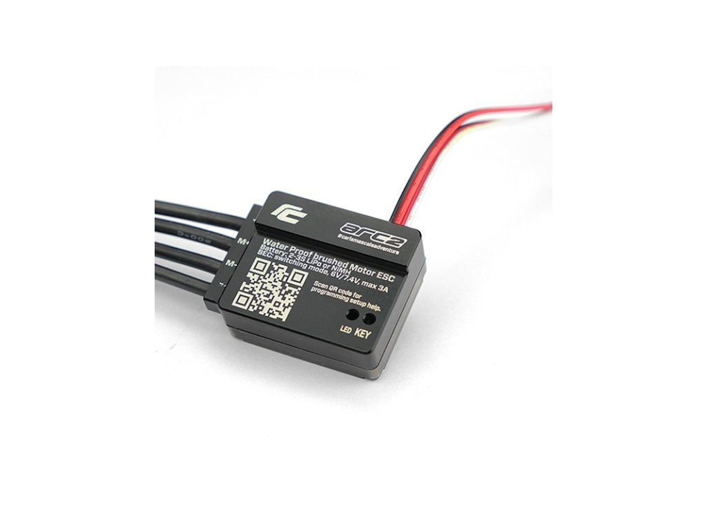 Dedicated Descent Control: (Mode 4 na Regulátoru) Funkce Kontrolovaný plynulý sjezd napodobuje elektronické systémy namontované na většině moderních 4x4 Aut v reálu. Vyrovnává brzdnou sílu s otáčkami plynu, což umožňuje podvozku provádět kontrolovaný sjezd i v nejstrmějších svazích pomocí minimálního plynu a vlastní hmotnosti soupravy. Dalo by se to nazvat Gravity Assist, protože podvozek pomalu klesá pod plnou kontrolou. Při použití se Descent Control Force zmenšuje, když se zvyšuje plyn a zvyšuje se, když se snižuje plyn. Tato funkce je také zvláště užitečná při stoupání do svahu. Při nulovém plynu drží ARC-1 soupravu v poloze při plné brzdě a působí jako ruční brzda. To pak řidiči umožňuje čas naplánovat si další tah a vybrat perfektní směr jízdy. Se zvyšováním plynu a stoupáním podvozku se brzdný účinek snižuje. POZNÁMKA: V režimu Crawler je funkce Descent Control standardně aktivní. Ale Regulátor má stále okamžitý zpětný chod, což je důležitá vlastnost v Rock Crawlingu, která pomáhá zastavit převrácení podvozku ve velmi strmém stoupání.