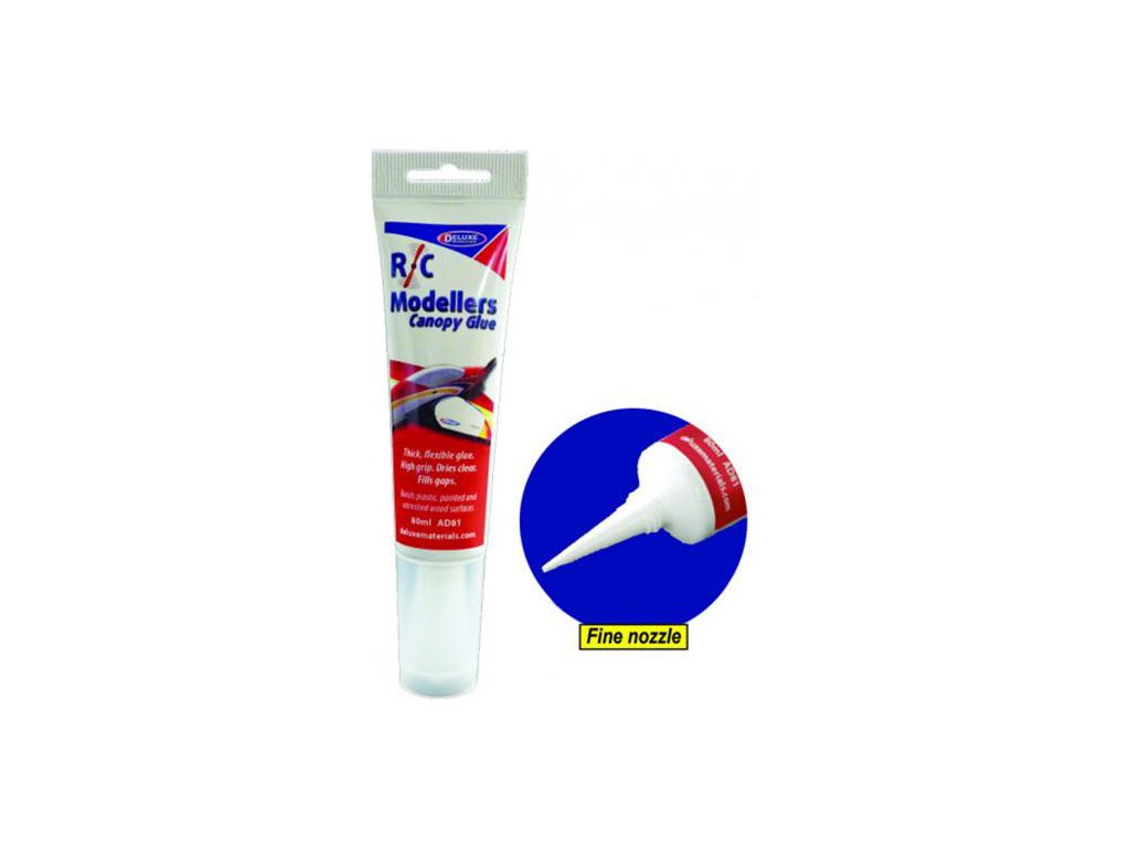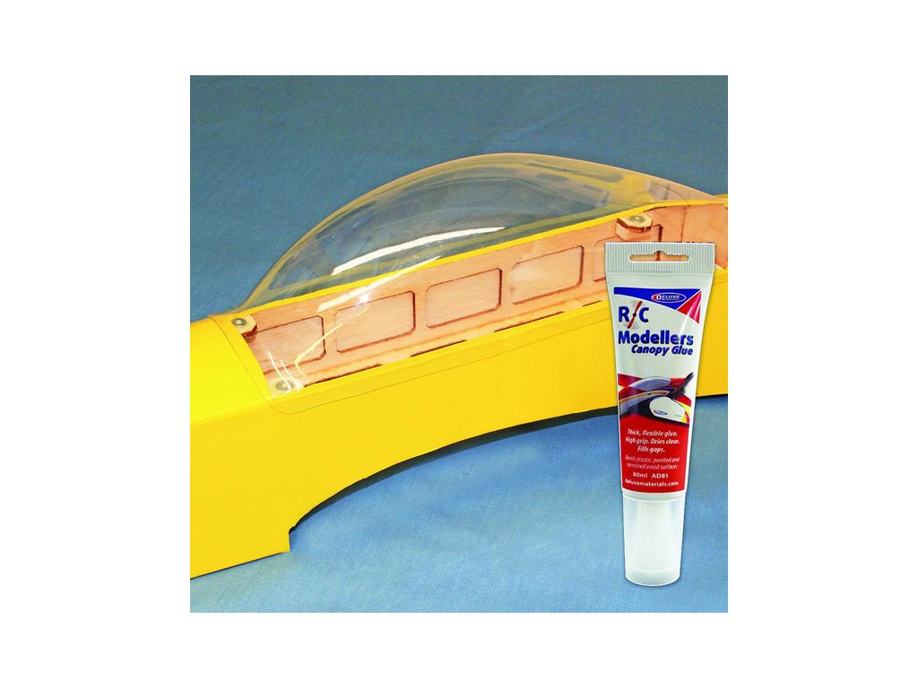 RC Modeller od Deluxe Materials je víceúčelové lepidlo určené zejména na lepení čirých plastů - např. na kabiny modelů. Lepidlo dále lepí plasty, dřevo, fólie a nabarvené povrchy. Lepidlo je husté konzistence, snadno se nanáší na povrch, ze kterého nestéká. Po vytvrzení je spoji čirý, pružný a odolný vůči vodě. Lepidlo lze barvit běžnými barvami. Doba schnutí je 30 až 60 minut podle tloušťky vrstvy. Nezaschnuté lepidlo lze omýt vodou.
