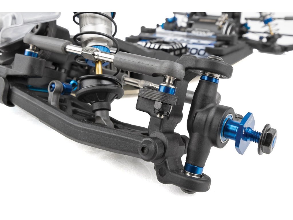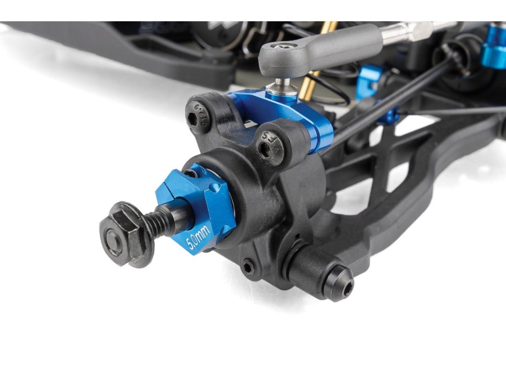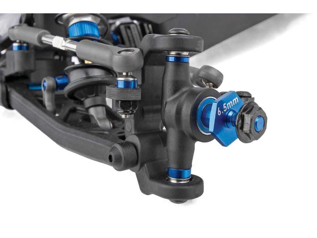 - Hliníková přední náprava o průměru 6,5 mm zvyšuje stabilitu a přilnavost při použití tenkých předních kol a nízkoprofilových pneumatik.