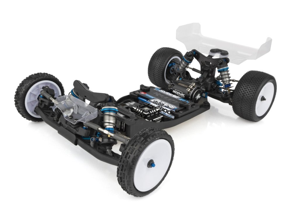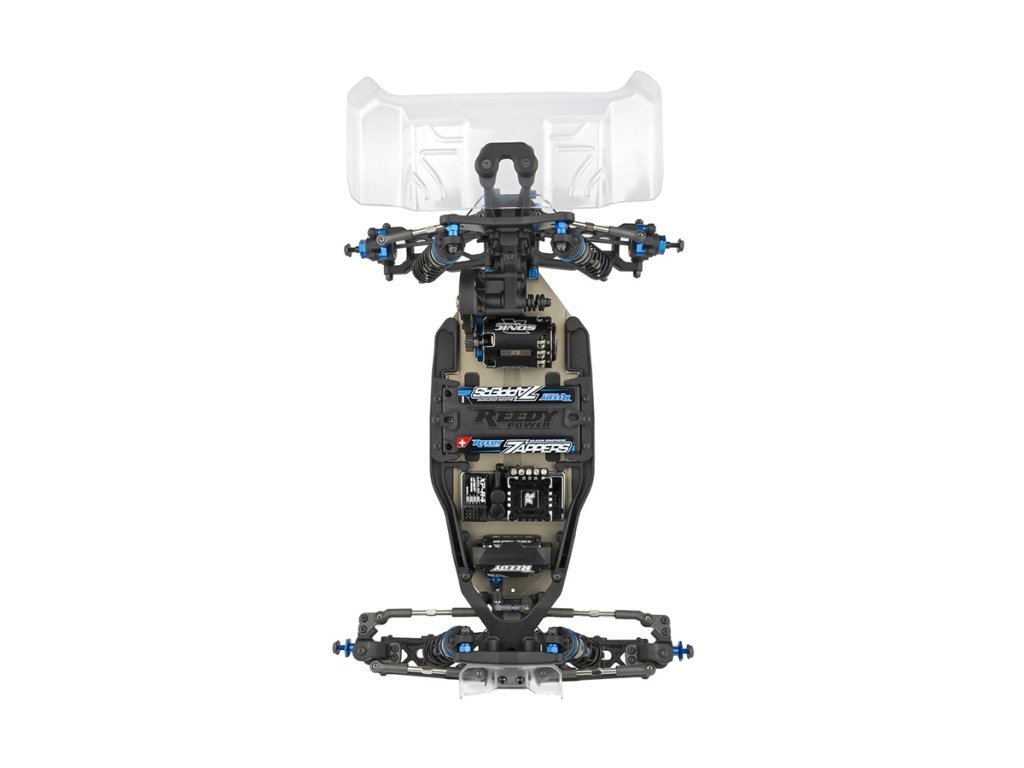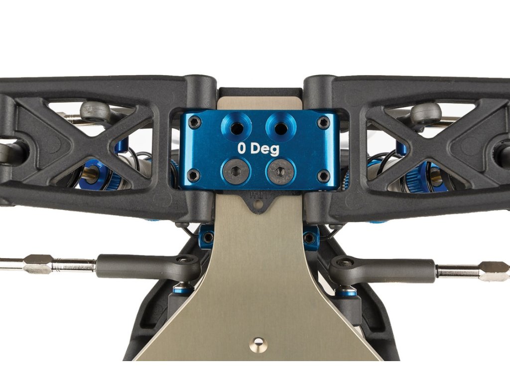 - Hliníkový podvozek 7075-T6 se zvýšeným úhlem odjezdu a volitelnými kapsami na zátěžové desky.