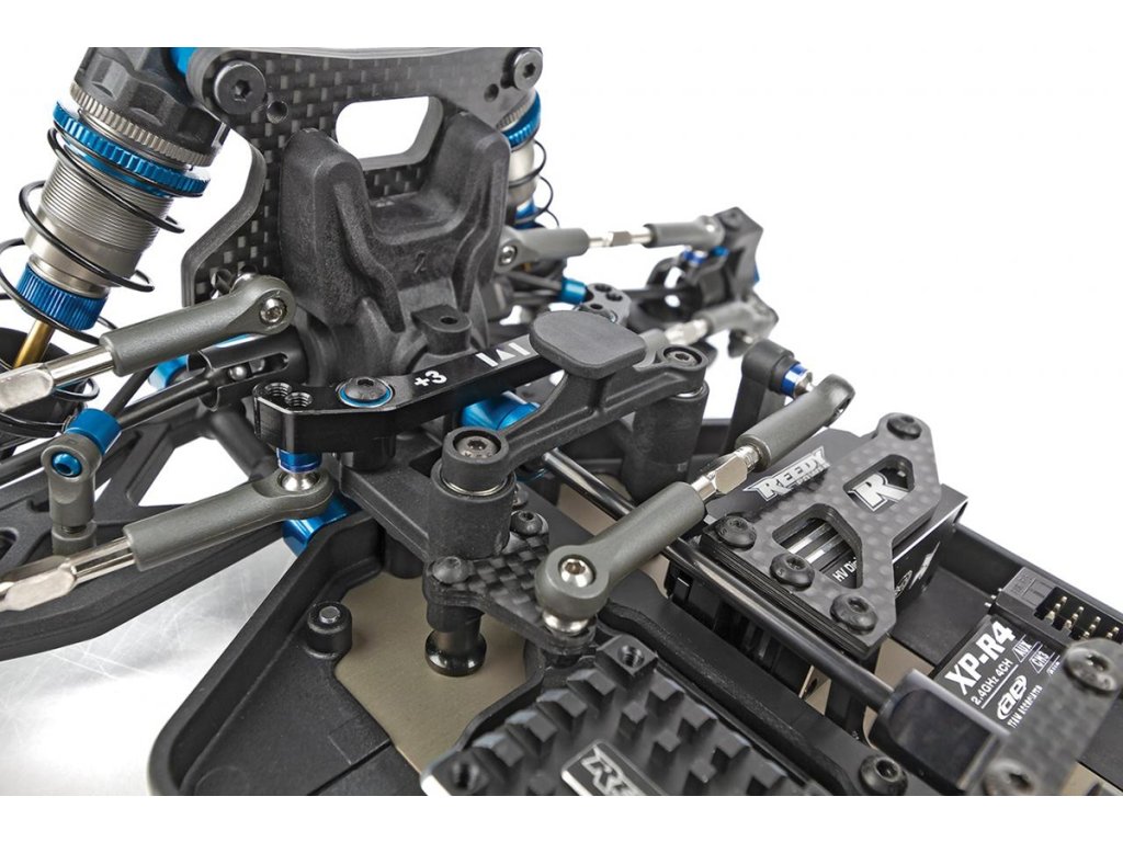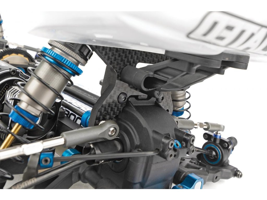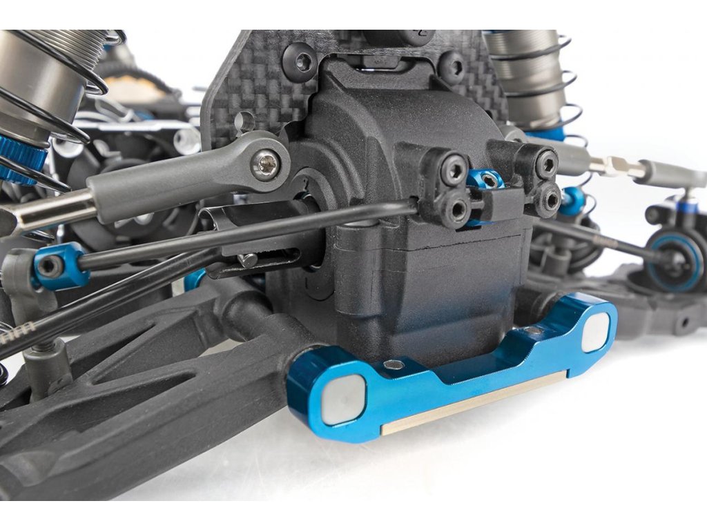 - Lehké lisované skříně převodovky vpředu i vzadu: Dvě přední skříně s pevnou výškou umožňující volbu výšky diferenciálu 0 a +2 mm. Jedna zadní skříň s vložkami ve stylu RC10B6 umožňující volbu výšky diferenciálu 0, +1, +2 a +3 mm.