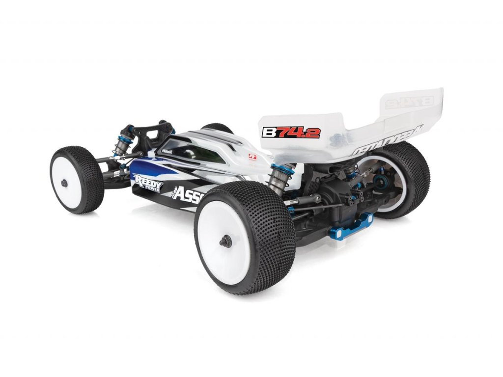 Champions Edition zachovává klíčové vlastnosti svého předchůdce. Lisované převodovky RC10B74.2 vpředu a vzadu snižují těžiště tím, že odstraňují hmotnost z vysokých bodů vozu. Nejnovější technologie 13mm big bore tlumičů od společnosti Team Associated udržuje RC10B74.2 na nejvyšší úrovni v oblasti skoků a ovladatelnosti na nerovnostech. Díky předním gull wing ramenům zavěšení a převodovým sadám diferenciálů LTC je jízda s platformou RC10B74.2 snazší a předvídatelnější za jakýchkoli podmínek na trati.