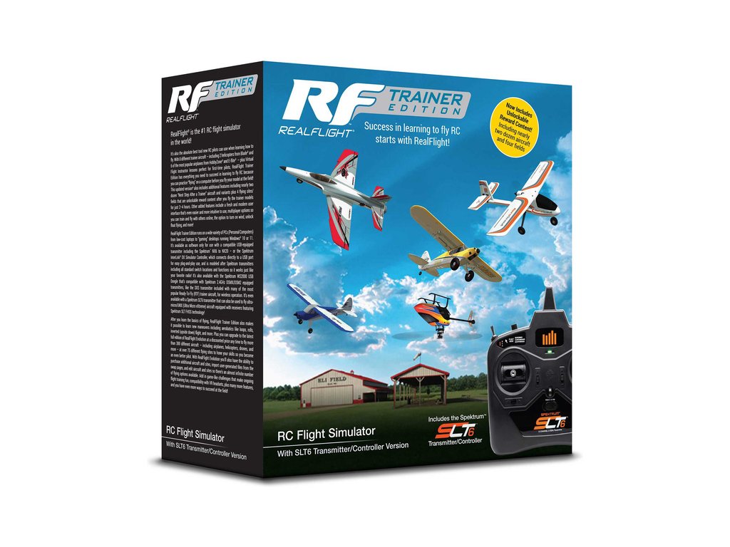 RealFlight® je RC letecký simulátor na PC, který můžete k výuce létání použít. S osmi různými cvičnými modely letadel, včetně dvou modelů vrtulníků od Blade® a 6 nejoblíbenějšími letadly od HobbyZone® a E-flite®, plus lekce virtuálního letového instruktora, je ideální pro začínající RC piloty. RealFlight Trainer Edition má vše co potřebujete k výuce létání, protože si můžete natrénovat "létání" na počítači, než budete létat s RC modelem! Tato aktualizovaná verze obsahuje další funkce, včetně téměř dvou desítek letadel a variant „Další krok po trenérovi“ jsou 4 nová rozhraní, která jsou odemykatelná poté, co budete létat s modely Trainer Edition po dobu pouhých 2-4 hodin. Mezi další přidané funkce patří svěží a moderní uživatelské rozhraní, jehož použití je ještě jednodušší a intuitivnější, možnost hry pro více hráčů, takže můžete trénovat a létat s ostatními online, možnost zapnout vítr, odemknout létání s modely s plováky a další!