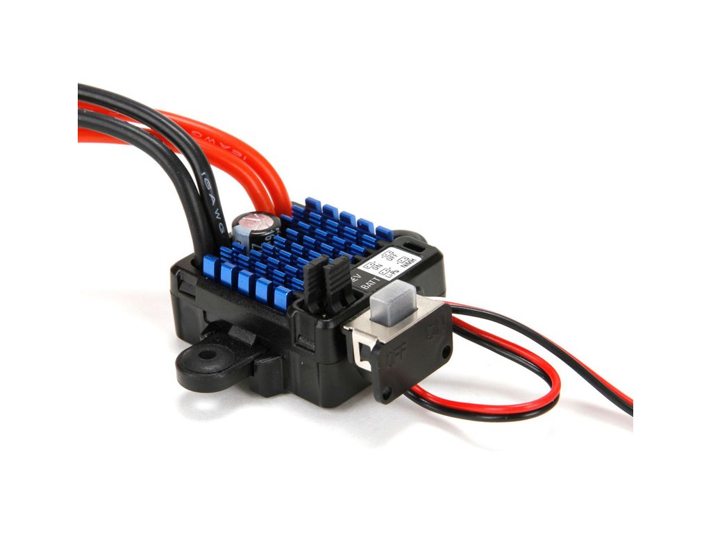 Regulátor pro stejnosměrné motory je určen do lodí, max. proud do 60A, napájení 2S LiPol nebo 5-7 čl. NiMH. Nastavení reverzu nebo typu baterií pomocí propojek na regulátoru. Jednoduché použití.