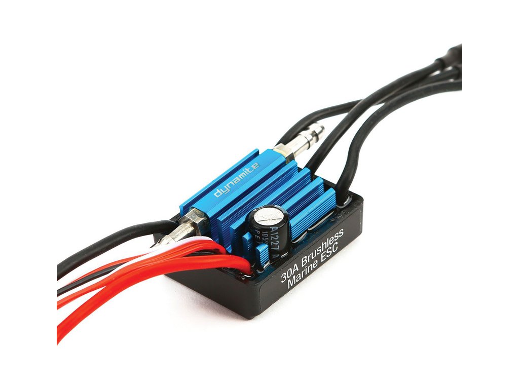 Střídavý vodou chlazený regulátor Marine 30 A pro napájení 2 až 3 články LiPol nebo 6 až 9 článkovou NiMH baterií pro střídavé motory 540 - 550. Regulátor je z výroby osazen bateriovým konektorem EC3, konektory k motoru jsou 4 mm krimpovací.