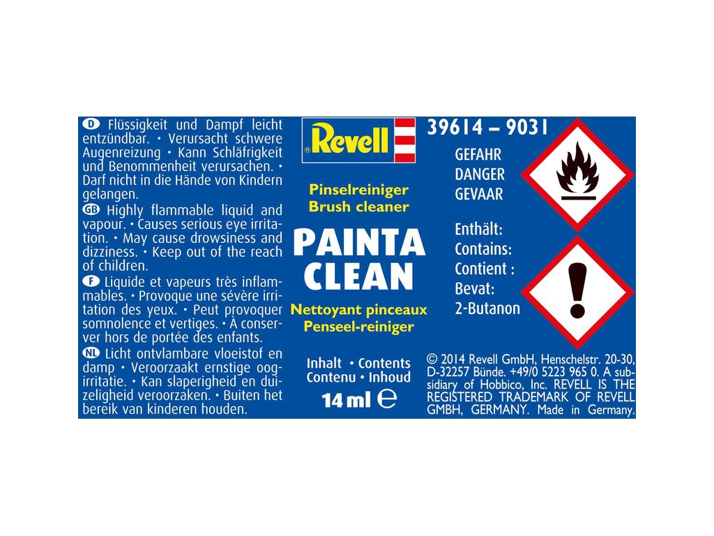 Revell Painta Clean 39614 slouží pro čištění štětců či stříkací pistole od syntetických (emailových) barev Revell. Přípravek je použitelný pouze pro neztvrdlé barvy, ztvrdlou barvu dokáže odstranit jen velmi omezeně. Přípravek nelze použít na průhledné plastové díly – způsobí jejich zbělání.