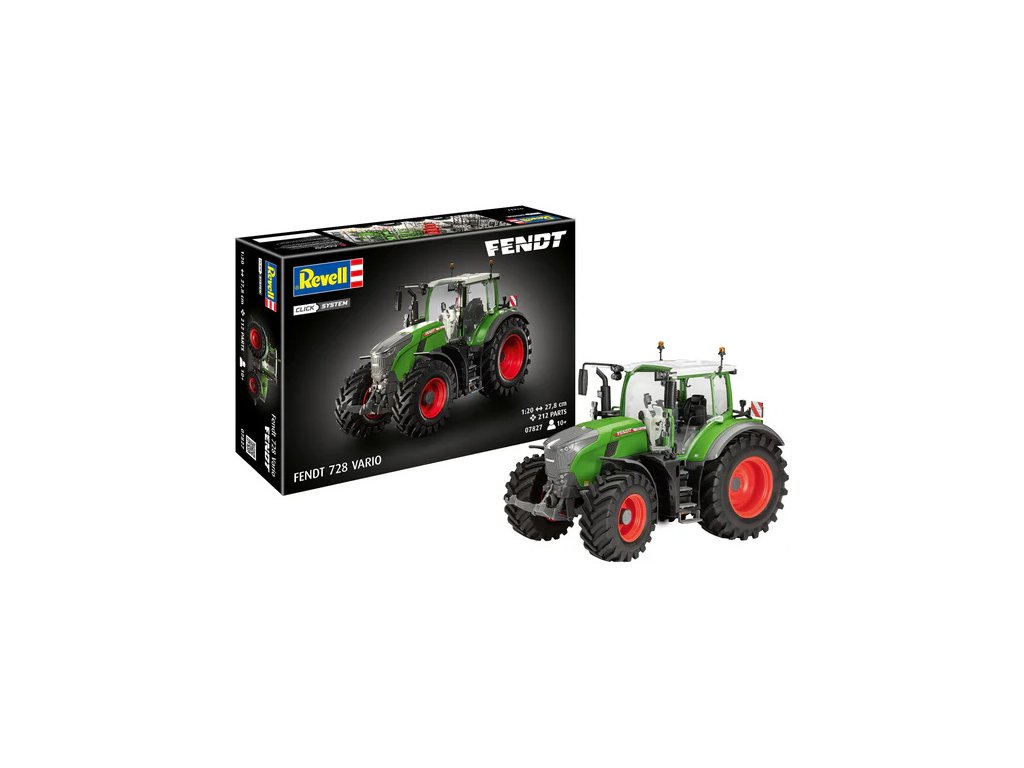 Plastikový model Revell 07827 - traktor Fendt 728 Vario v měřítku 1:20 k sestavení. Stavebnice obsahuje 212 dílků, obtížnost 2.