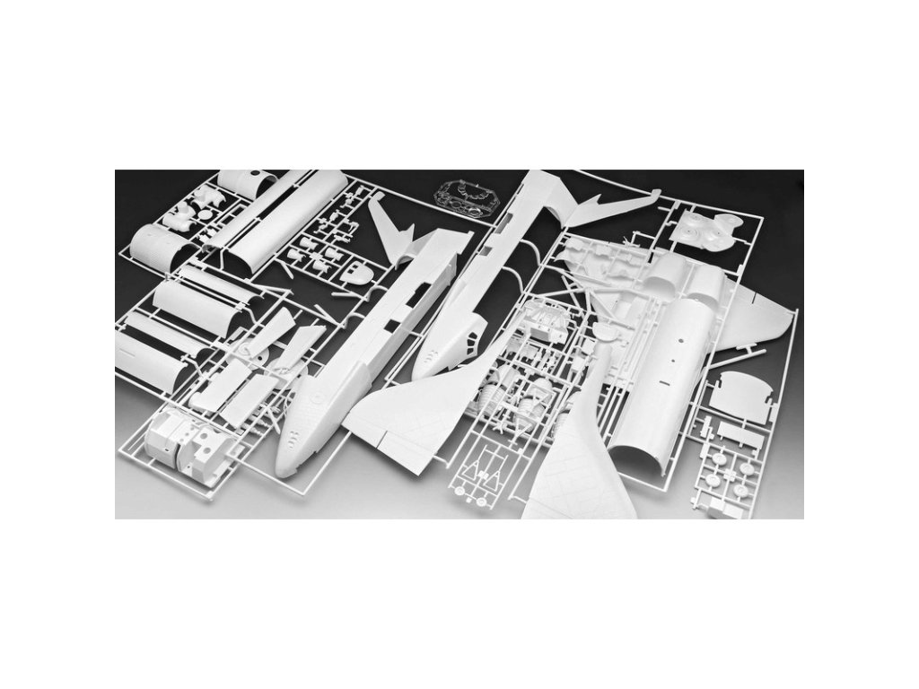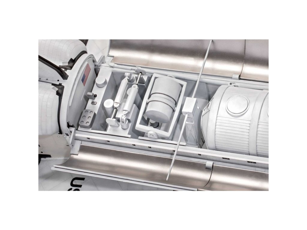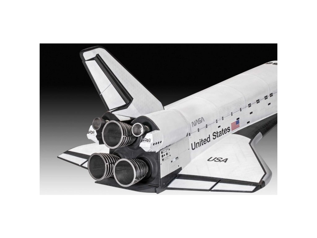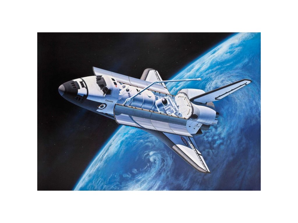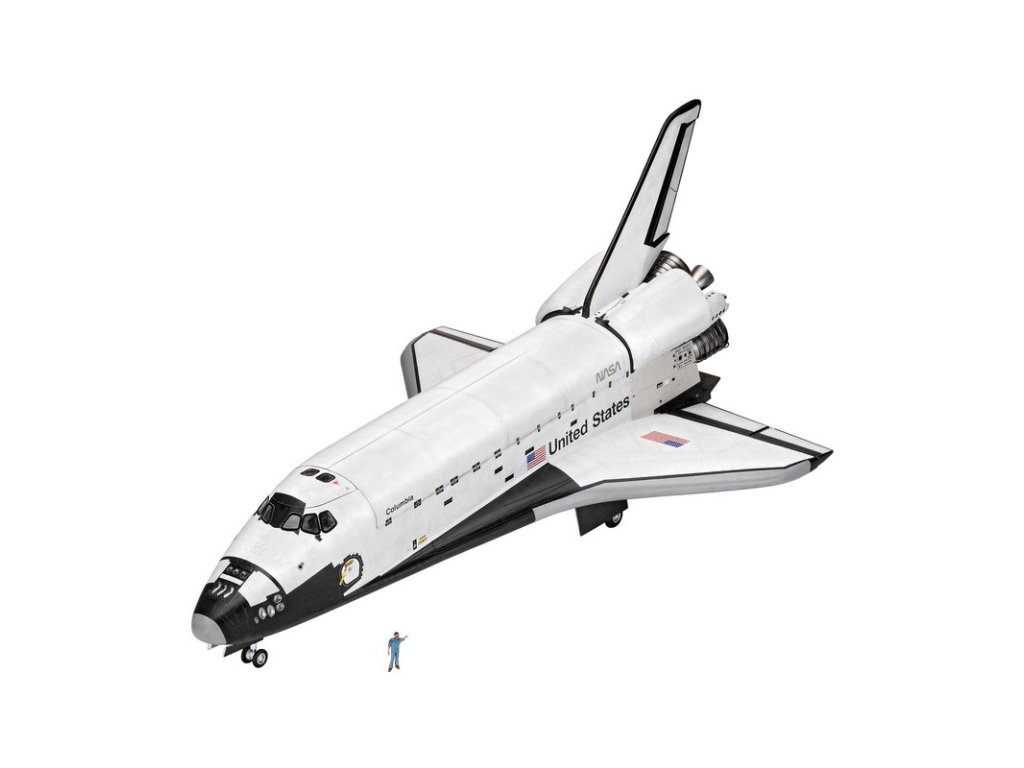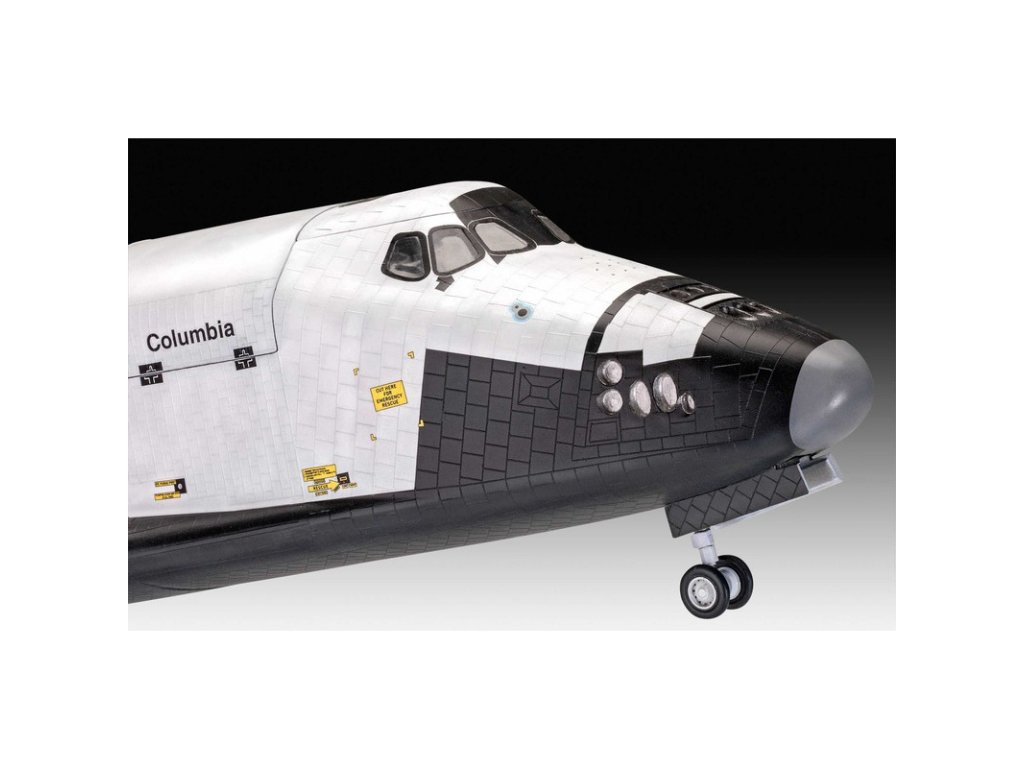 Plastikový model Revell 05673 – raketoplán NASA v měřítku 1:72 ke slepení. Délka 489 mm, 111 dílků, stavební obtížnost 5. Součástí je lepidlo, štětec a 6 barviček. Limitované edice v dárkovém balení k 40. výročí!