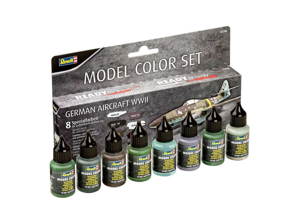 Sada osmi akrylových barev pro modeláře Revell nejčastěji používaných na německých vojenských letounech WW2. Barvy jsou po 17 ml.