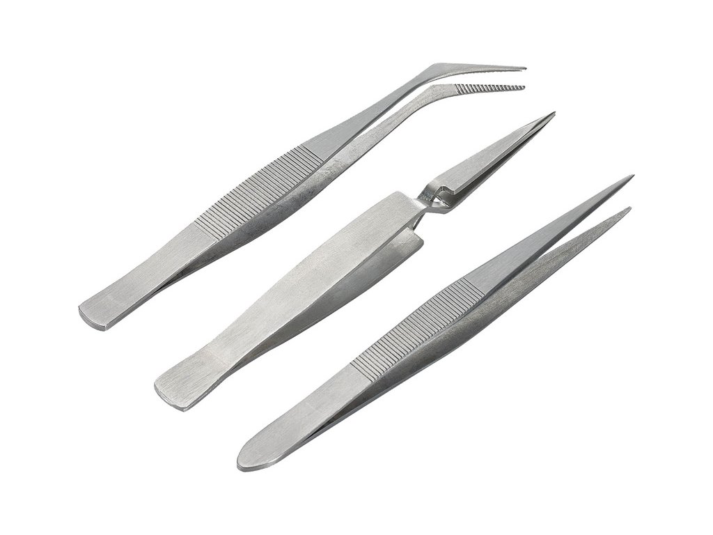 Sada 3 praktických pinzet. S těmito pinzetami budete moci snadno a s jistotou manipulovat i s těmi nejmenšími díly, které jenom na modelech najdete.