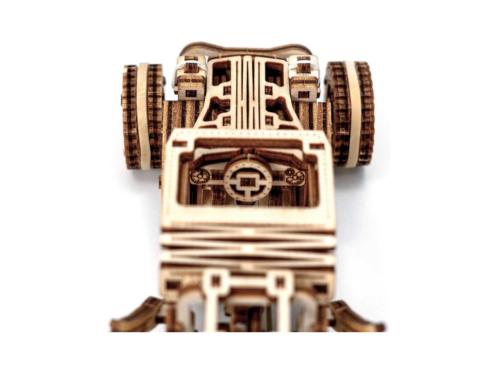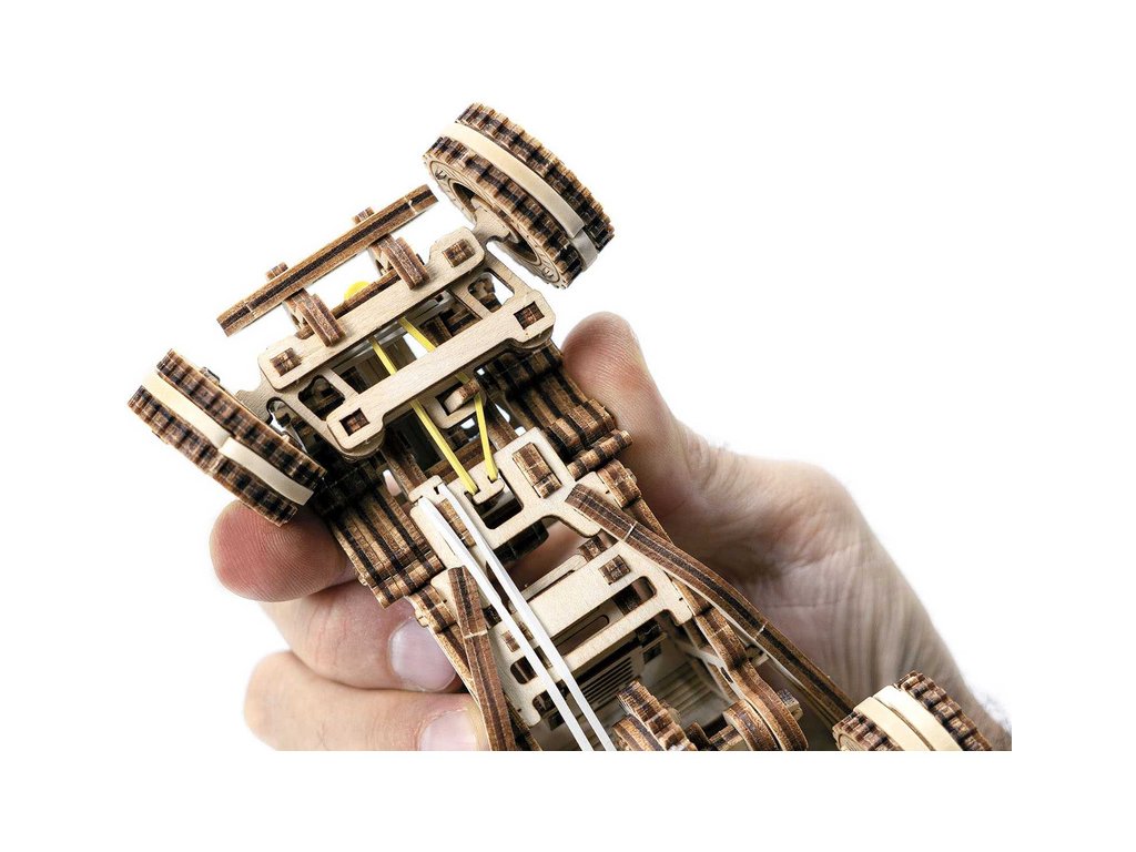 Myšlenka za Tiny Adventures Buggy pochází z tradice mechanických modelů, které byly populární již na počátku 20. století. Tehdy takové stavby fascinovaly fandy i milovníky techniky. Díky moderním technologiím, jako jsou procesy řezání laserem a udržitelné materiály, vdechujeme této tradici nový život. Buggy kombinuje nostalgii s inovativní technologií a dělá mechaniku hmatatelnou jako nikdy předtím. Není to jen model, ale pocta umění pohyblivé dřevěné mechaniky.