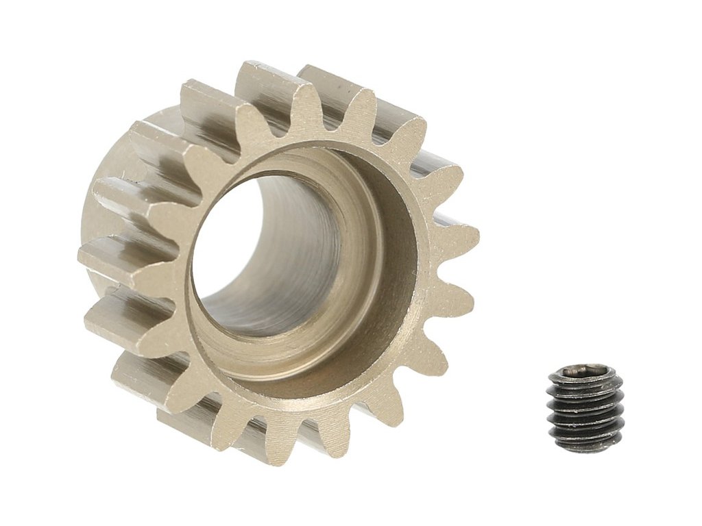 Robitronic pastorek na hřídel 8 mm s 17 zuby a modulem ozubení 25,4DP (1 mm) pro RC modely aut. Vyrobeno z kalené oceli. Vnější průměr 19mm.