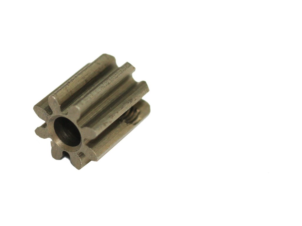 Robitronic pastorek na hřídel 3.17 mm (1/8") s 8 zuby a modulem ozubení 32DP (0,8 mm) pro RC modely aut. Vyrobeno z kalené oceli.