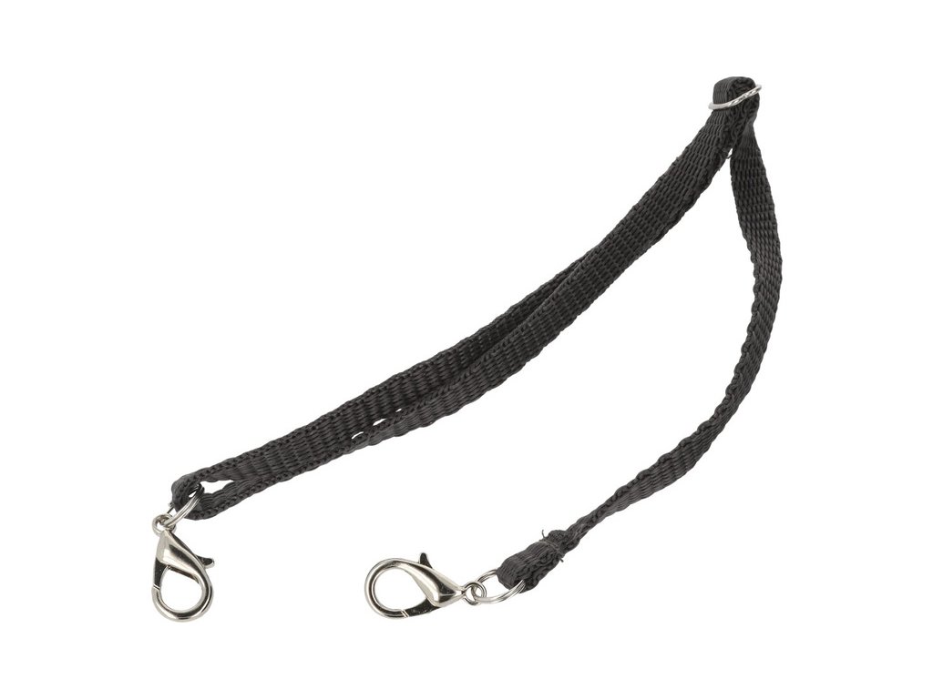 Stahovací kurtna je vyrobena z nylonového pásku a šířce 6 mm v černém provedení. Na každé straně jsou karabinky pro zajištění o rozměrech 21 x 11 mm. Délka pásku je 30 - 40 cm.