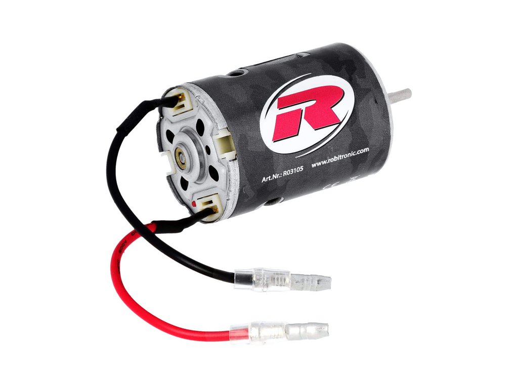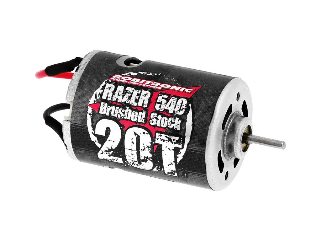 Stejnosměrný motor Robitronic Razer řady 540 s 20 závity. Kluzné bronzové ložiska, rotor má 3 vinutí, chlazení je zajištěno vnitřním ventilátorem. Rozměry ø36x54 mm, průměr hřídele je 3.17 mm (1/8").