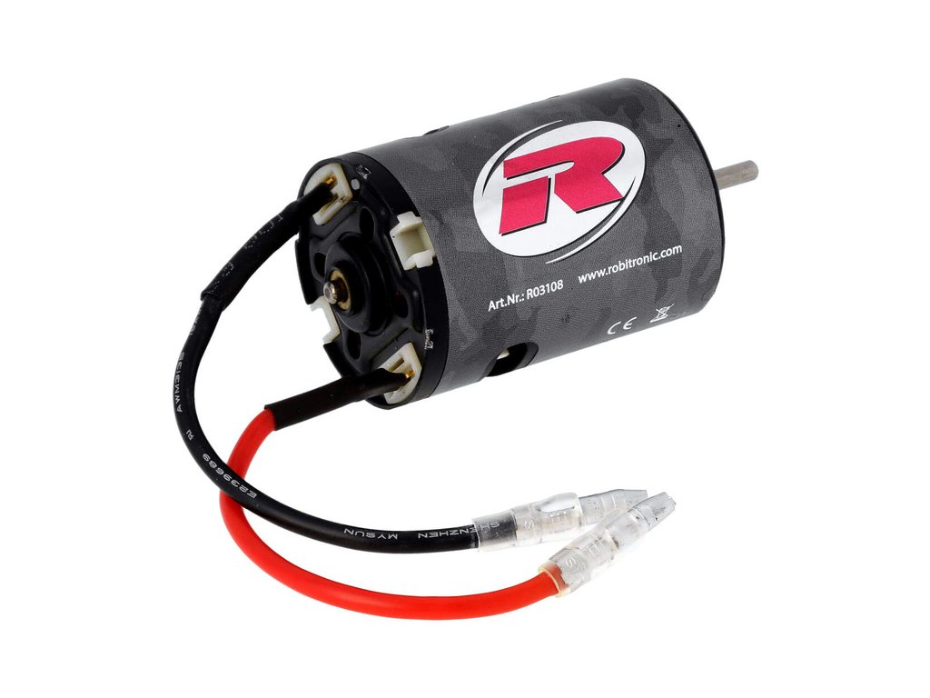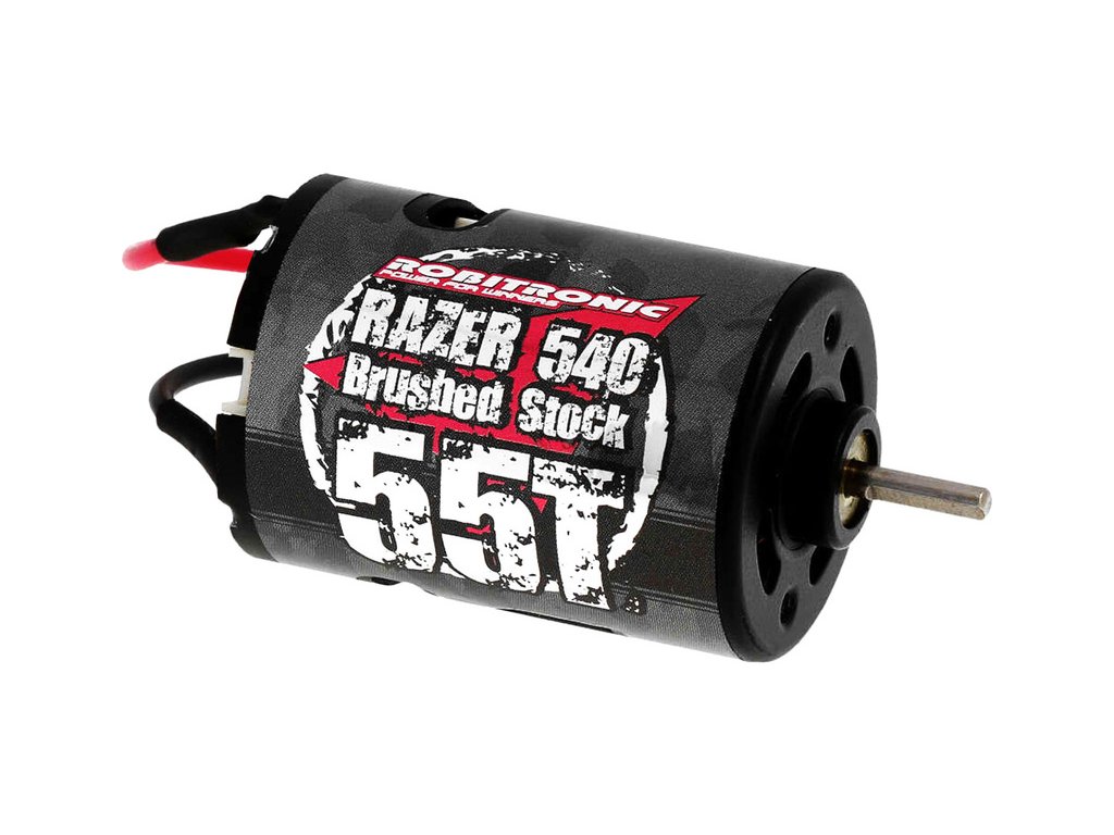 Stejnosměrný motor Robitronic Razer řady 540 s 55 závity. Kluzné bronzové ložiska, rotor má 3 vinutí, chlazení je zajištěno vnitřním ventilátorem. Rozměry ø36x54 mm, průměr hřídele je 3.17 mm (1/8").