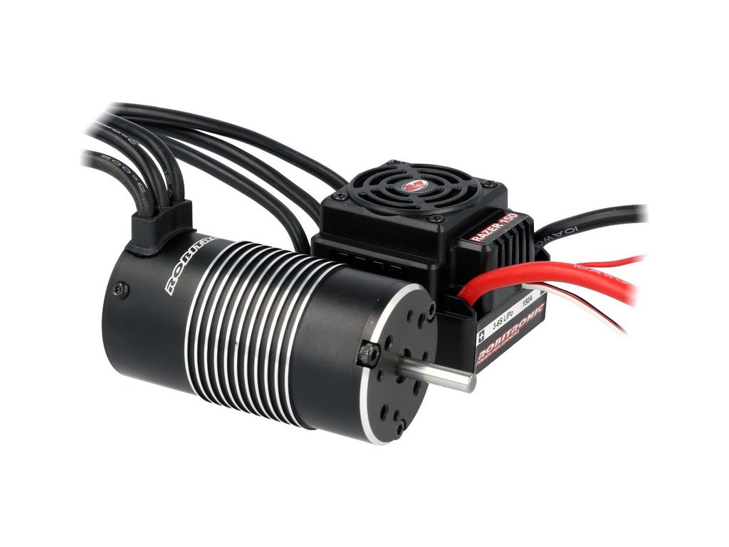 Robitronic střídavý motor Razer 4274 2000ot/V a regulátor 150A, do modelů 1:8 Truck a Monster Truck. Napájení akumulátorem 3-6S LiPo, nebo 8-18 čl. NiMH. Široká škála nastavení tlačítkem SET, nebo přes programovací kartu. Kulíčková ložiska motoru. Ocelová hřídel 5 mm.