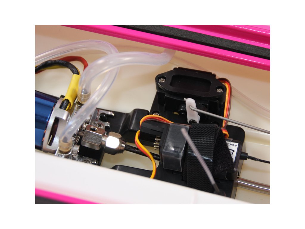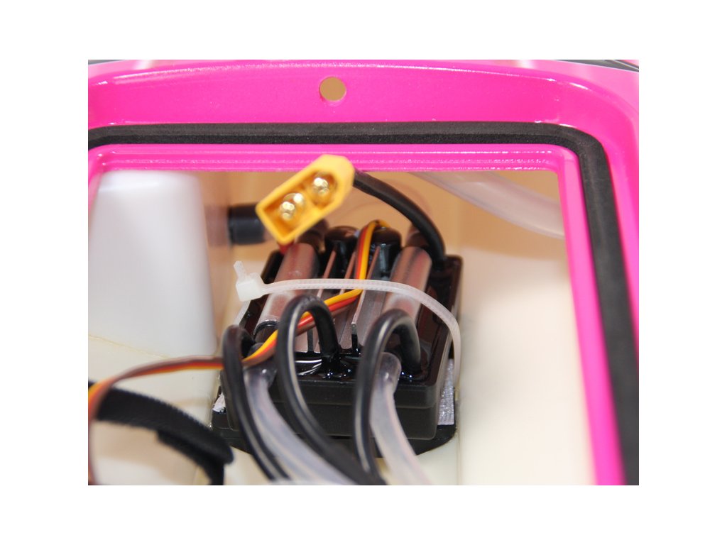 Všechny komponenty elektroniky jsou nainstalovány v trupu lodi. Ve střední části je motor, regulátor a v zadní části přijímač a na pravé straně je umístěno servo řízení.