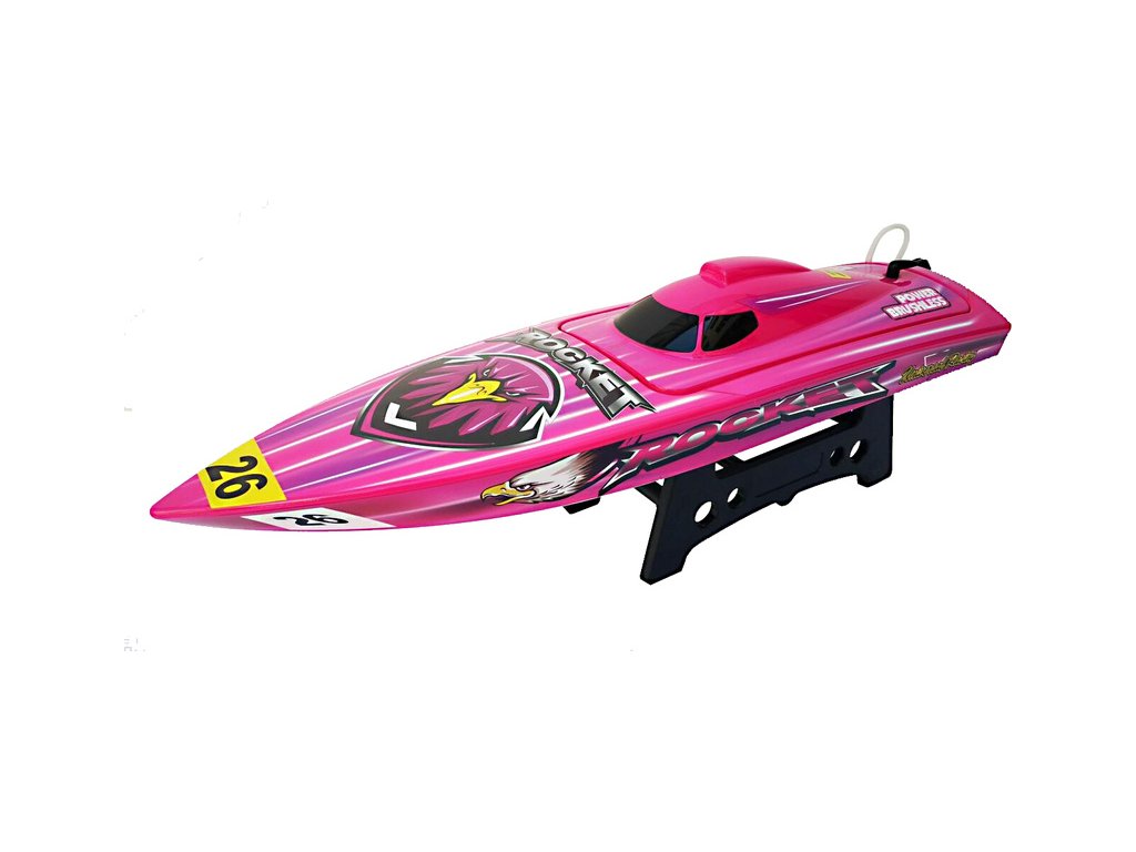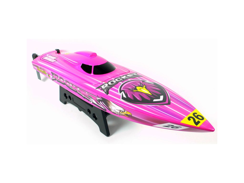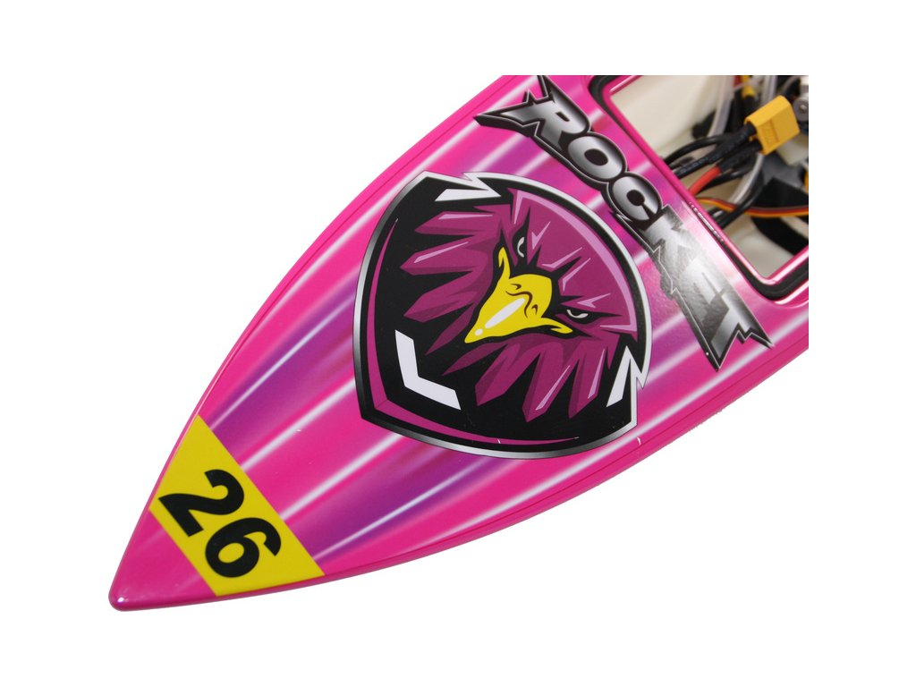 Rychlostní RC model člunu na dálkové ovládání Rocket Brushless V2 2.4GHz RTR. Délka více než 60cm, střídavý vodou chlazený motor a regulátor 30A. RC souprava Joysway 2,4 GHz FHSS s přijímačem. Atraktivní zbarvení, plastový trup, Doporučena LiPol 2S-3S 2200mAh.