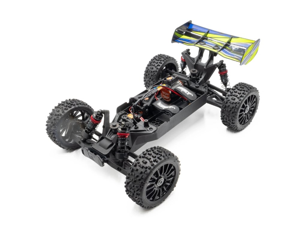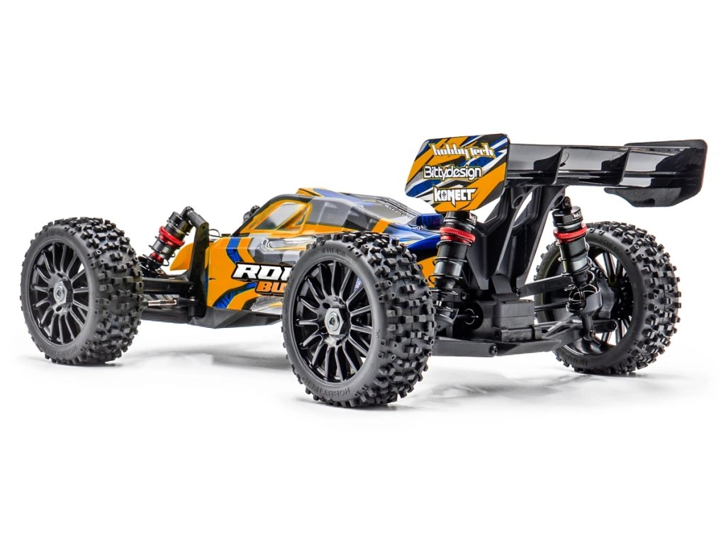 Tato buggy má pohonné ústrojí s náhonem na všechna kola, elektroniku Konect by Hobbywing a je vybavena velkoobjemovými celohliníkovými tlumiči.