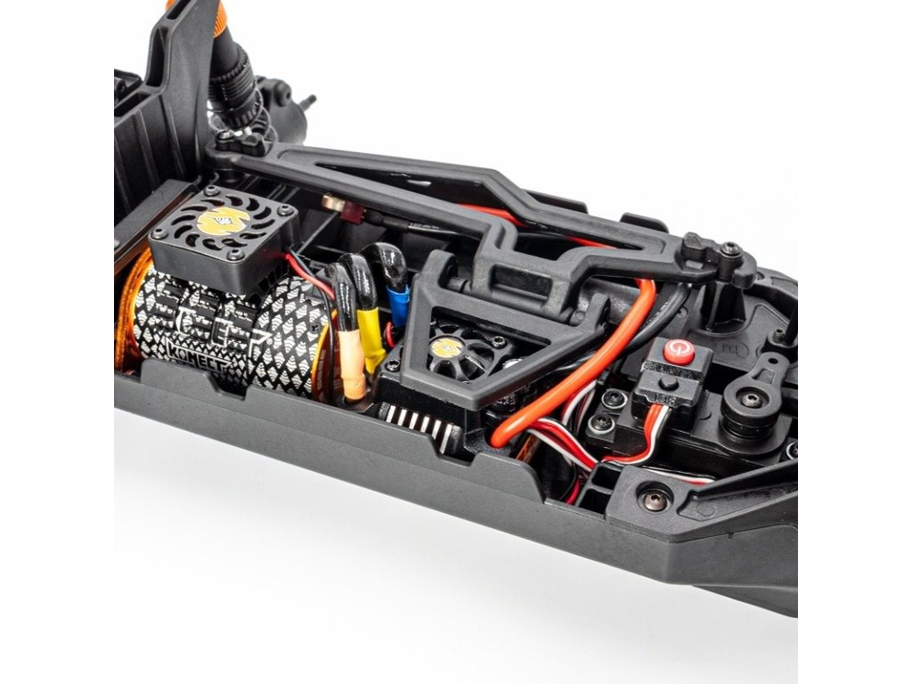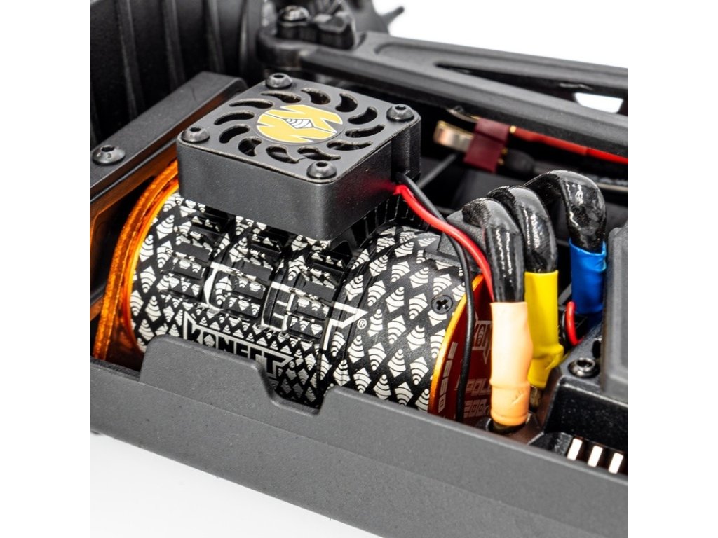 Plastové - Kompozitové šasi s lemy pro boční ochranu umožňuje modelu odolat všem podmínkám. Extrémně výkonný střídavý systém KONECT od HobbyWing, který zahrnuje 80 Ampérový vodotěsný regulátor otáček a motor velikosti 3660 s 2200Kv otáčkami. To vše dodává maximální výkon pro zrychlení a to po celou dobu jízdy.