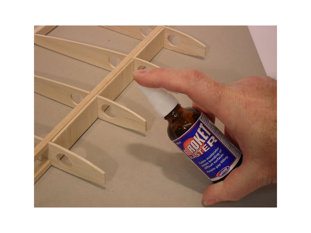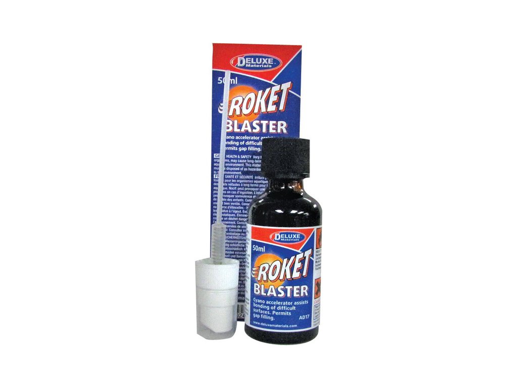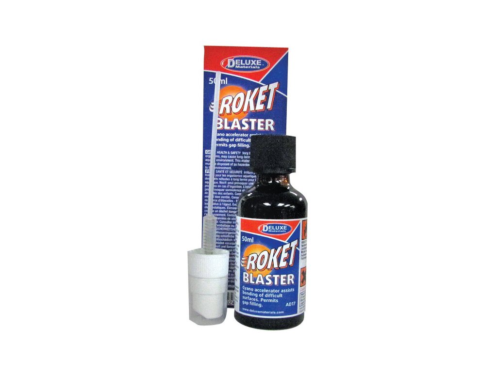Roket Blaster je katalyzátor, který díky zvýšení pH umožňuje rychlou polymeraci vteřinových lepidel nanesených i v silné vrstvě na nesavých površích. Aktivátor je dodáván v nádobě opatřené rozprašovačem. Díky speciální formuli nenapadá ani čiré akrylátové plasty!