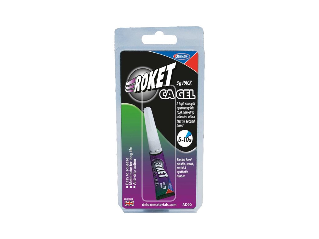 Roket Gel je kyanokrylátové lepidlo hustší konzistence, takže ze svislých ploch neztéká. Spoj je hotový za méně než 5 až 10 sekund. Dodáváni v praktické tubě, která rovněž prodlužuje životnost lepidla.