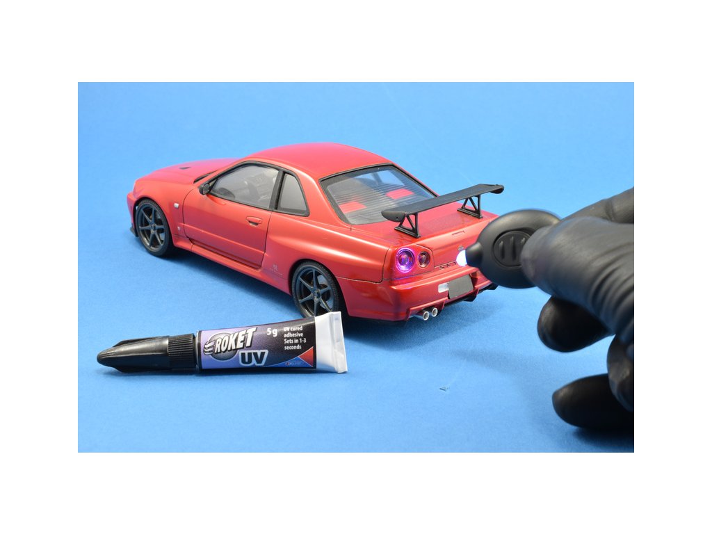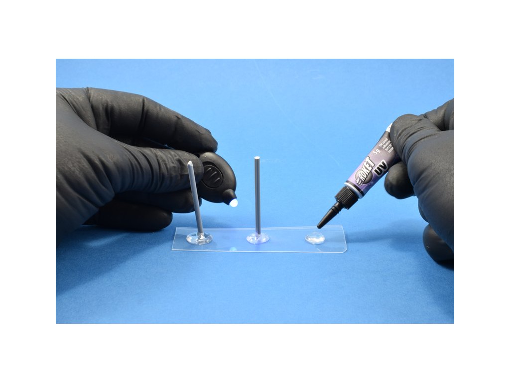 - Prakticky neomezený pracovní čas, máte tedy dostatek času na finální upevnění dílů. Lepidlo se vytvrdí až po osvětlení UV zářením během krátké doby (1 - 3 sekundy).