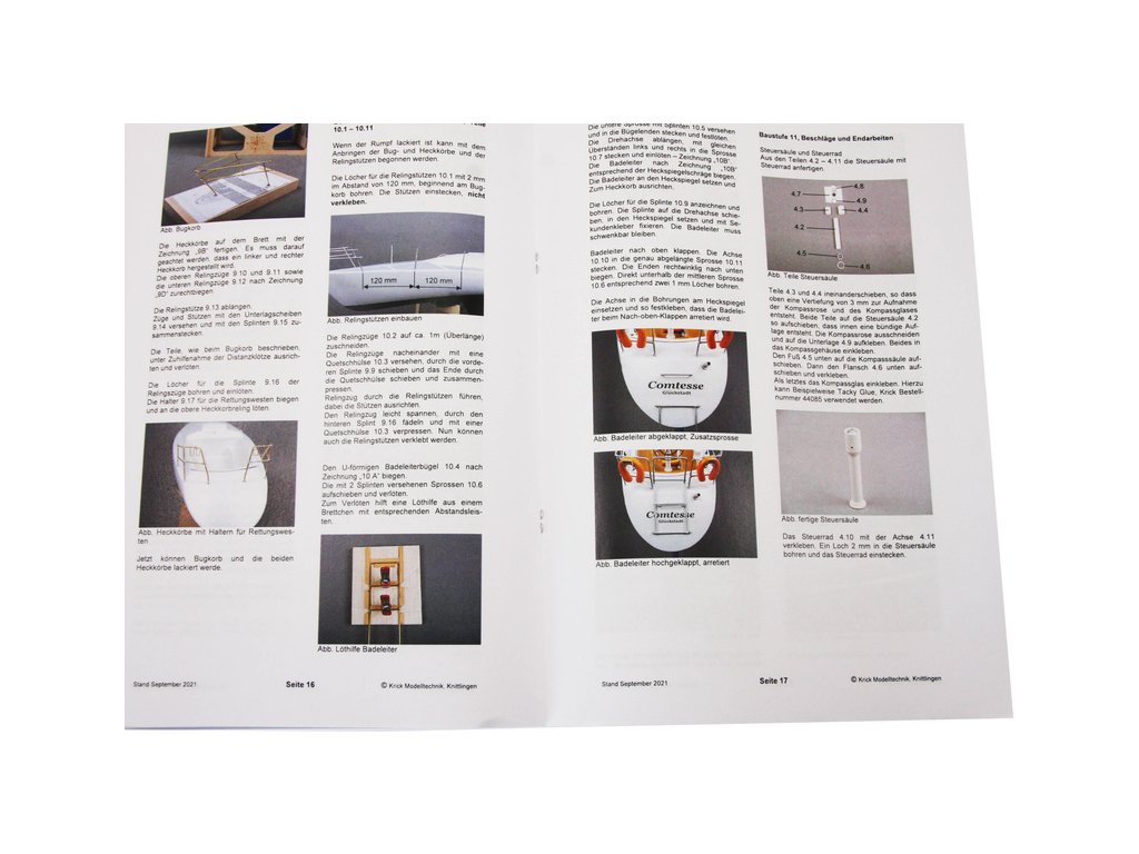 Set obsahuje kompletní sadu výkresové dokumentace modelu v měřítku 1:1 s obrázky jednotlivých detailů. Na výkrese jsou v měřítku nakresleny montážní sestavy, jejich kompletace. Vícejazyčný postup stavby rámcově upravuje logické sestavení jednotlivých komponentů.