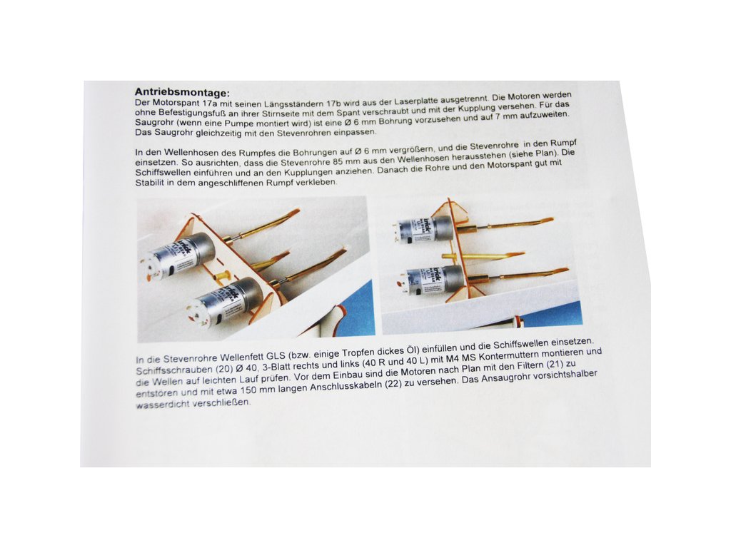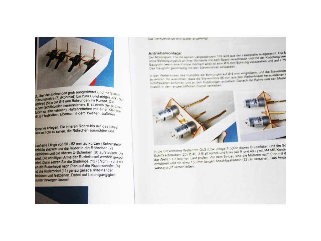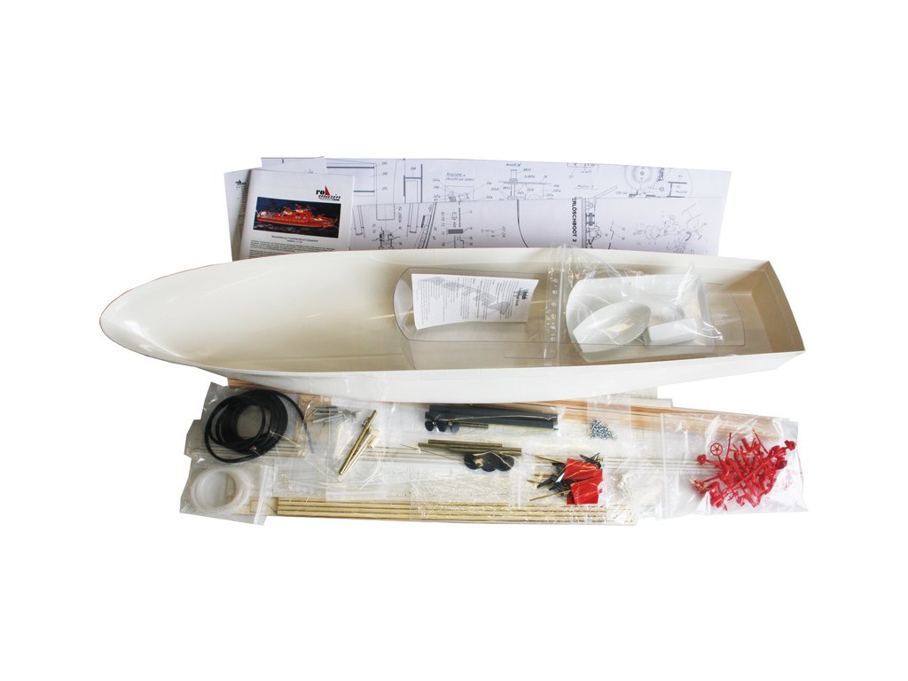 Maketa hasičského člunu Düsseldorf v měřítku 1:25 od firmy ROMARIN pro začínající i pokročilé lodní modeláře. Trup a paluba jsou ABS, CNC obráběné dřevěné a ABS díly pro pohon a instalaci RC. Kompletní kormidlo, 2x trubka náhonu a hřídele, lodní šrouby a spojky. Podrobný stavební návod v češtině, plány.