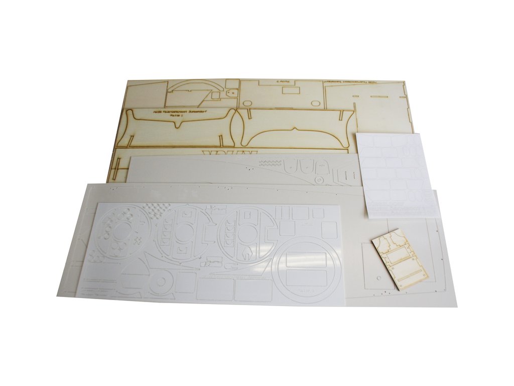 V balení jsou všechny základní díly modelu, jako výlisky trupu, nástavby, zasklení, překližkové výseky s díly paluby a dřevěné konstrukce, součásti pohonu, řízení, detaily lodi a spousta drobného příslušenství.