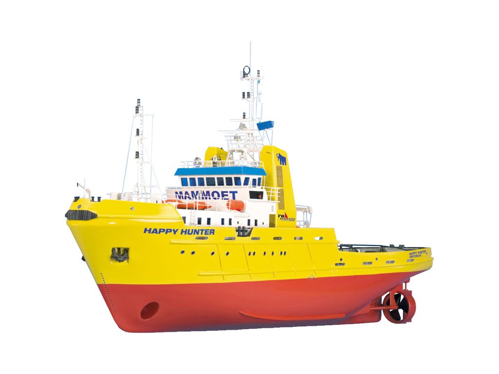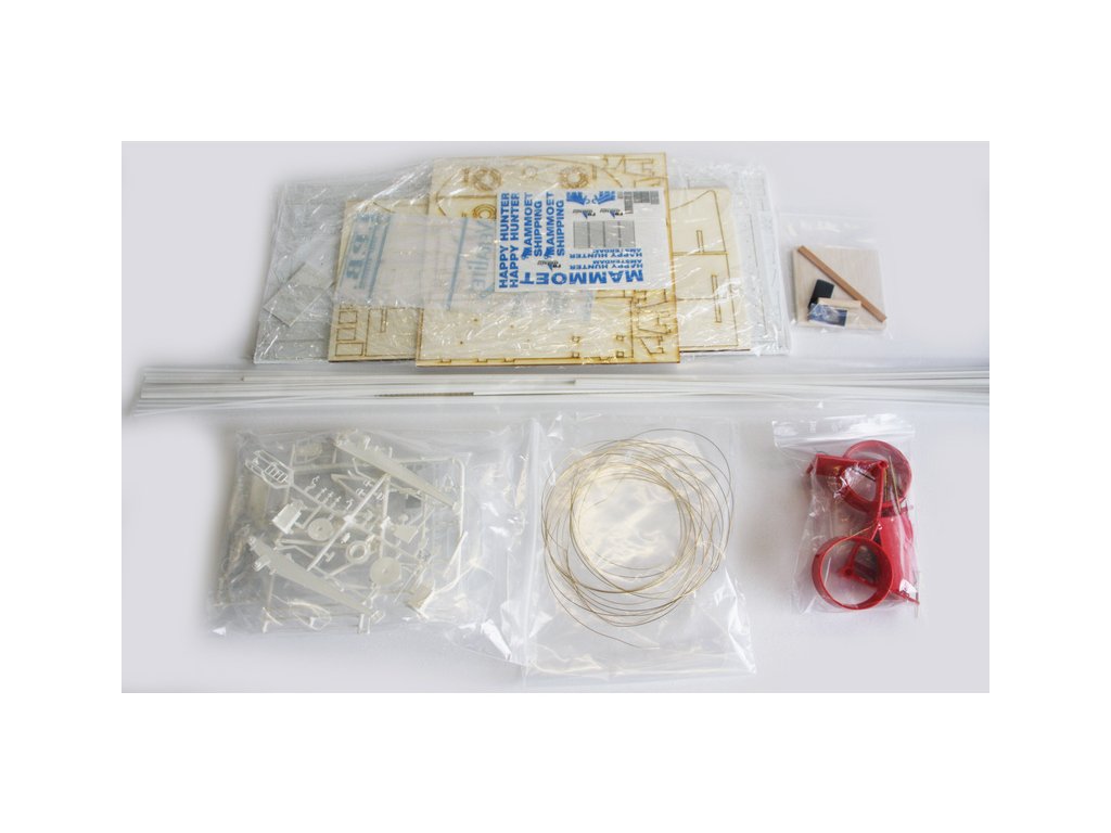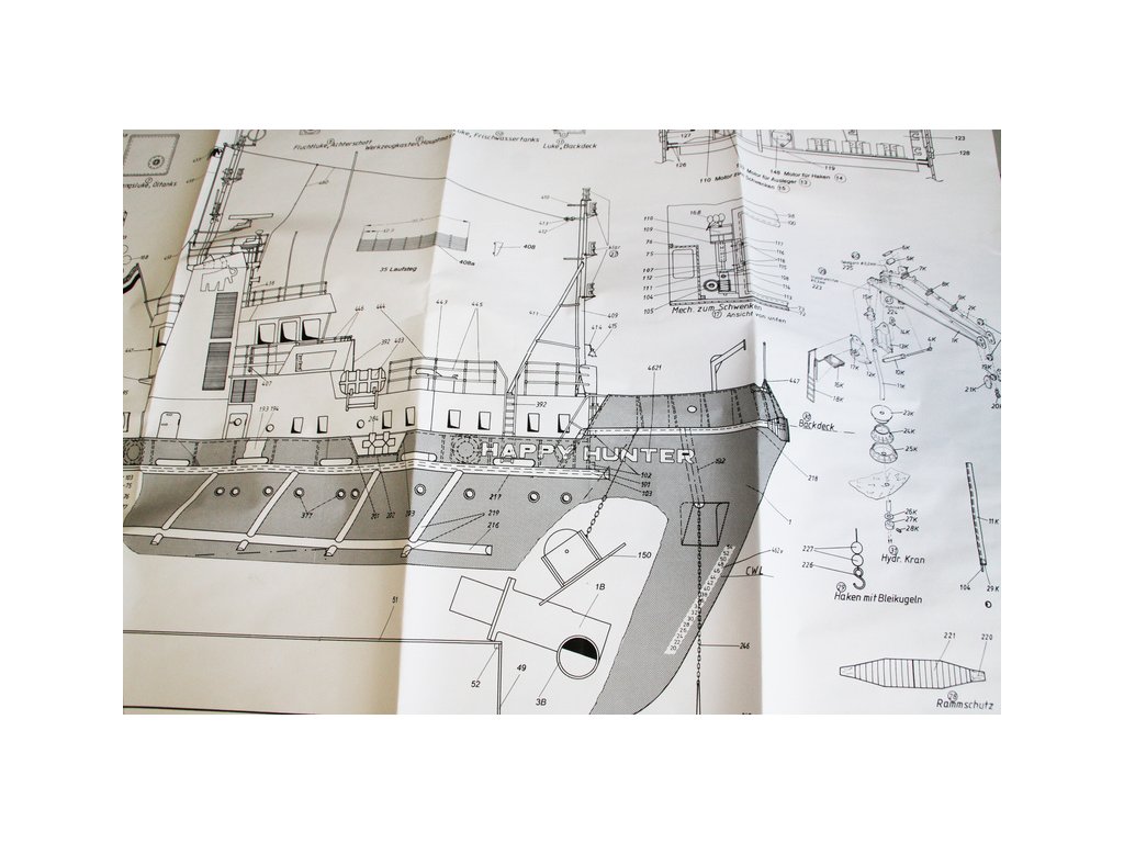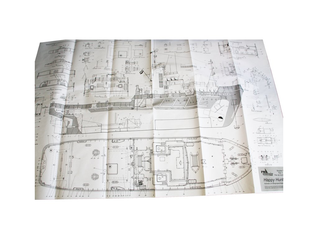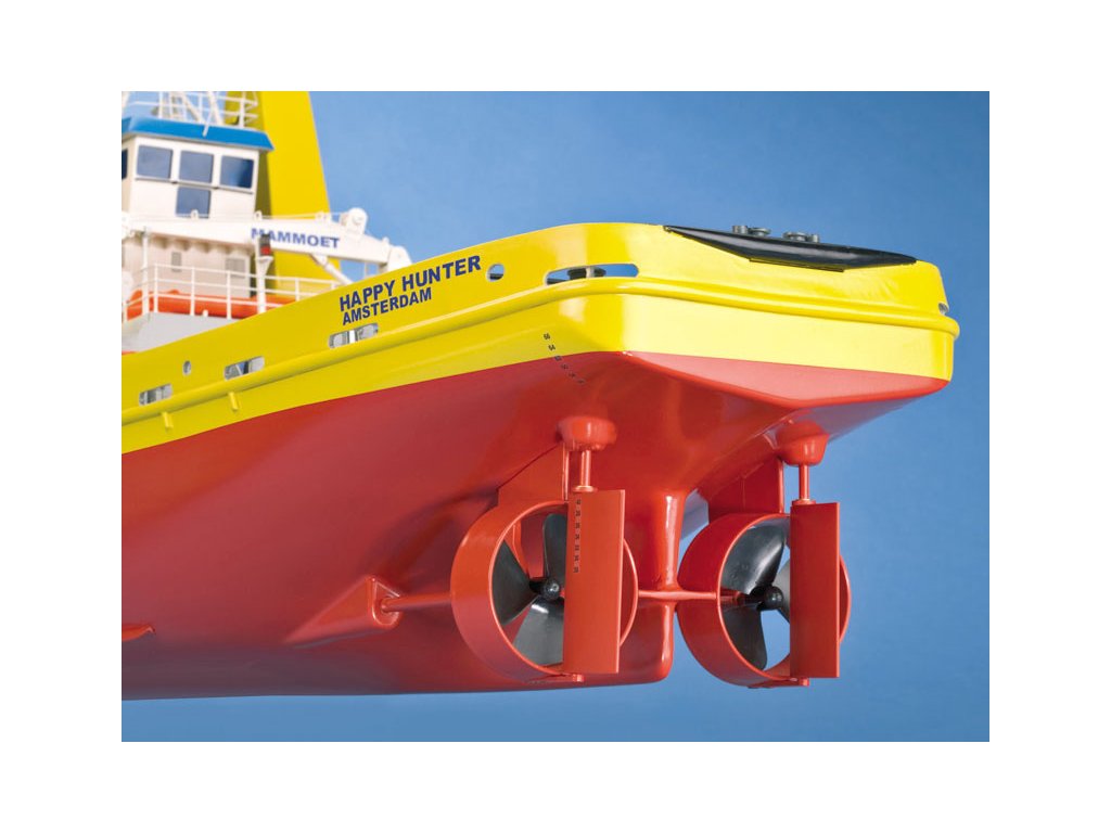 ROMARIN Happy Hunter kit je stavebnice repliky holandského zaoceánského záchranného remorkéru 1:50. Obsahuje plastové díly trupu, paluby a interiéru, dřevěné součásti, výkres, lodní šrouby a příslušenství. Samolepící obtisky, vícedílný stavební návod a plán.