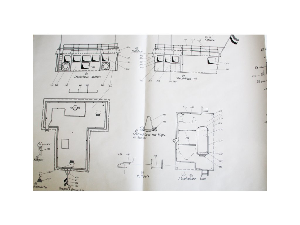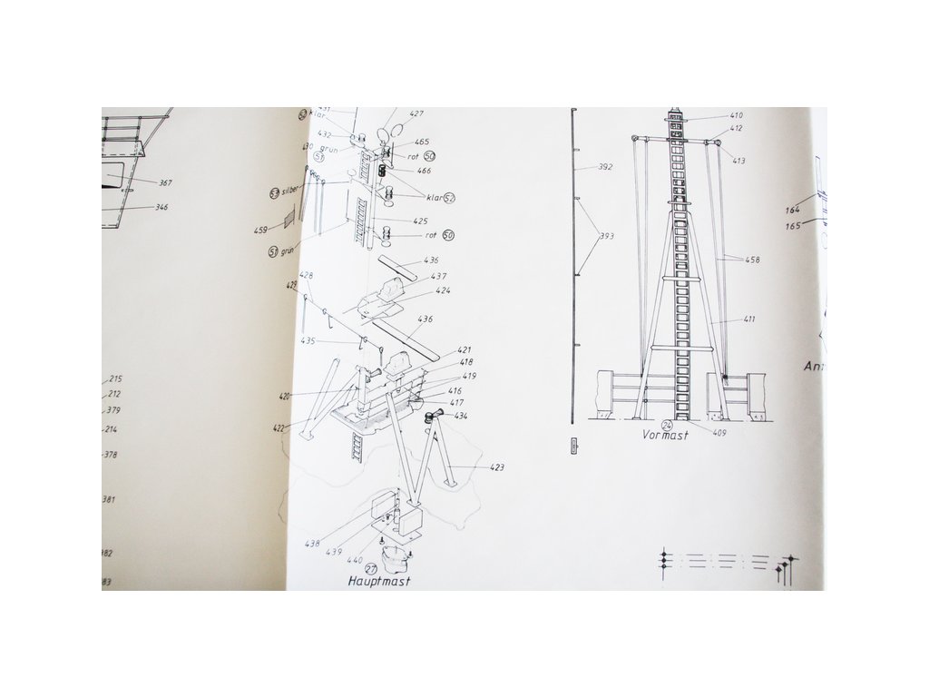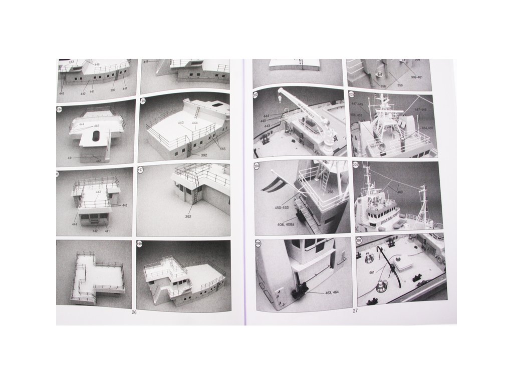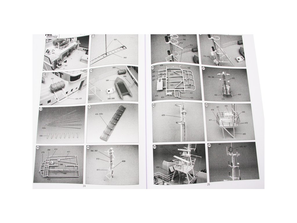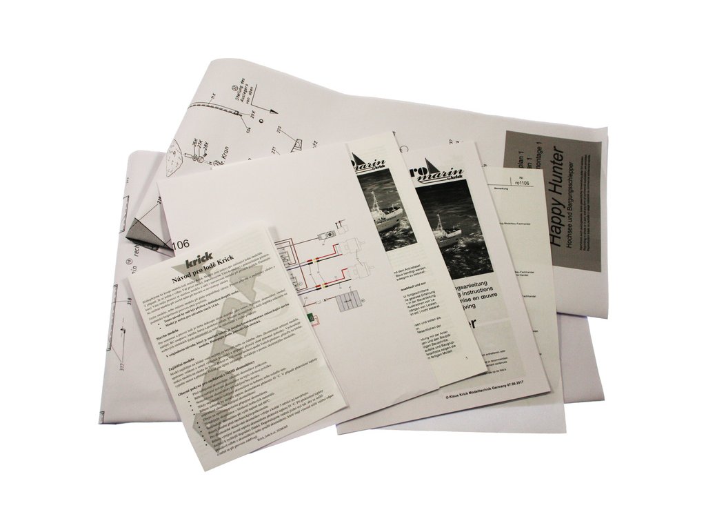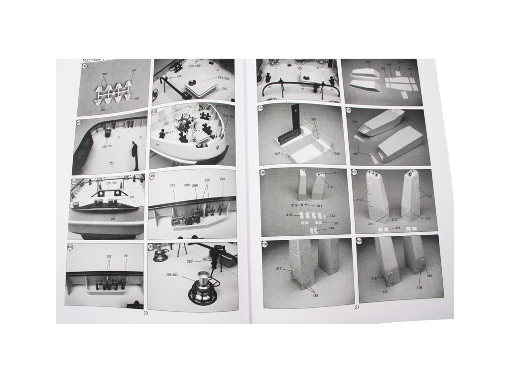 Set obsahuje kompletní sadu výkresové dokumentace modelu v měřítku 1:1 s obrázky jednotlivých detailů. Na výkrese jsou v měřítku nakresleny montážní sestavy a jejich kompletace. Vícejazyčný postup stavby rámcově upravuje logické sestavení jednotlivých komponentů.