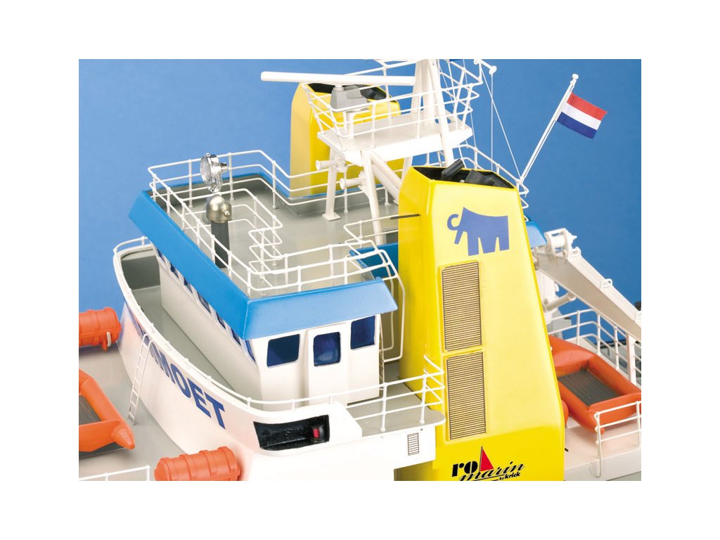 Kit pro začínající i zkušené lodní modeláře. Trup a paluba jsou z teplem tvářeného plastu ABS, CNC obráběné ABS díly pro pohon a instalaci RC. Kompletní kormidlo, dvojice lodních šroubů je umístěna v prstencích pro zvýšení účinnosti lodních šroubů, kormidla za nimi jsou velmi účinná díky rychlému proudu od vrtulí. Doporučené motory 700 pohání vrtule napřímo, ty jsou účinné i při nízkých otáčkách. Model lze zpracovat jak v základním provedení nebo jej proracovat do detailu jako maketu s kompletním vybavením a funkčními doplňky.