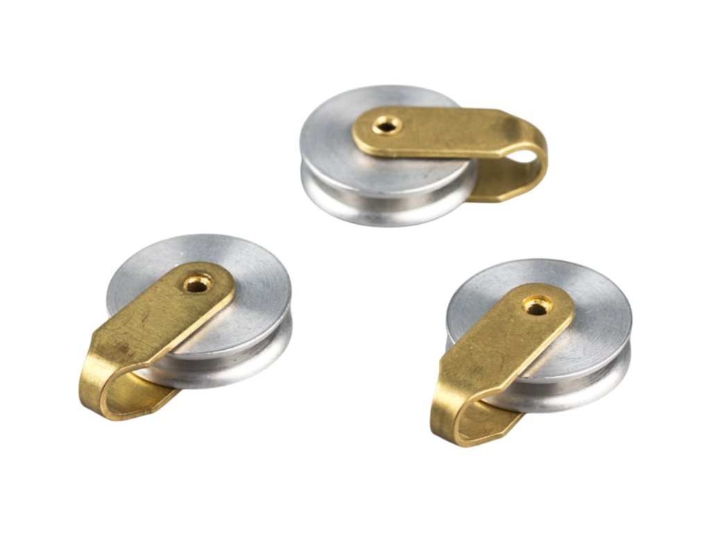 ROMARIN Kladka pro plachetnice (3 ks) jako funkční kladka pro plachetnice lodí má průměr 20mm. Mosazný třmen s hřídelí.