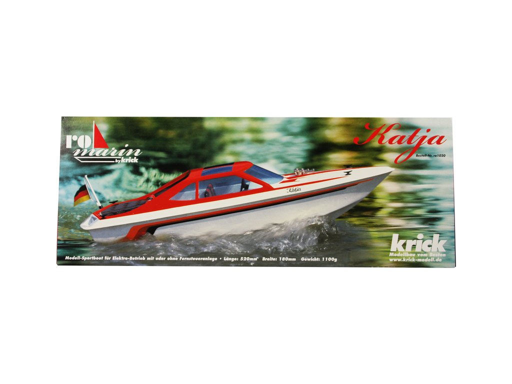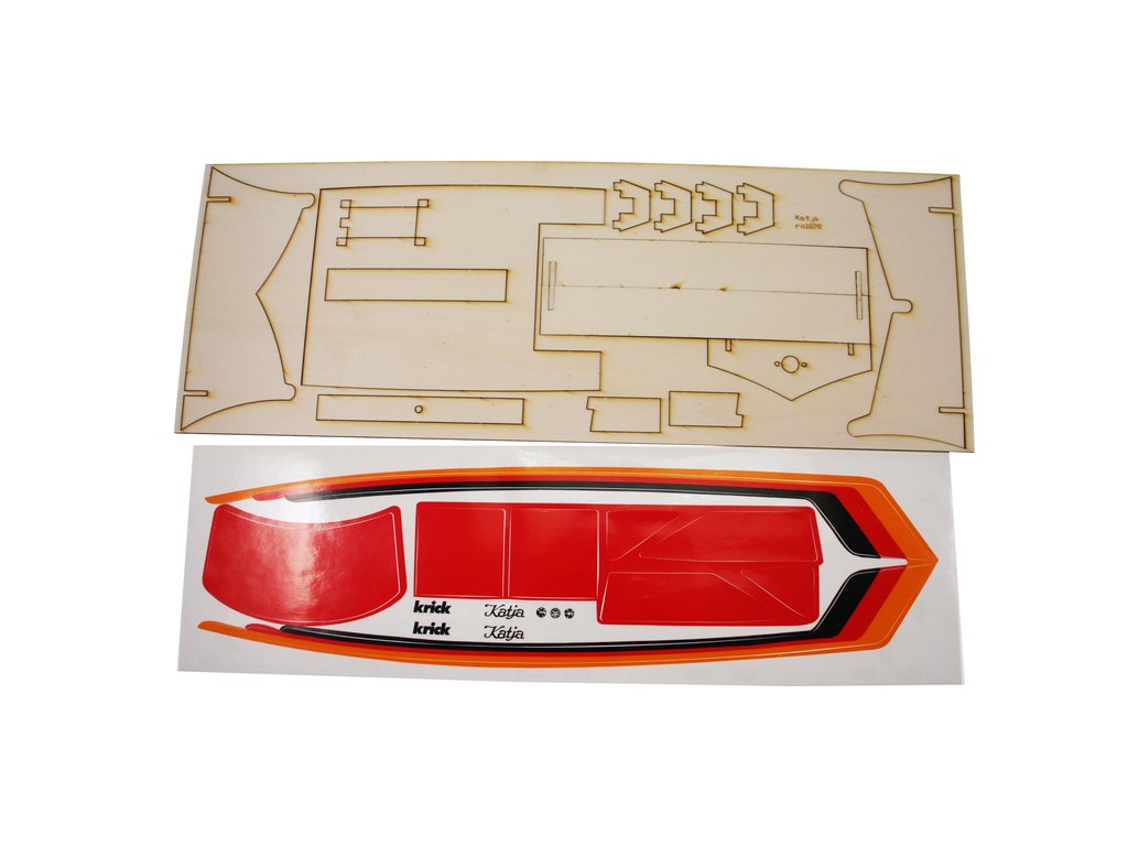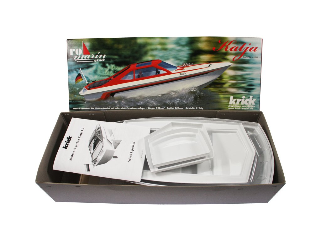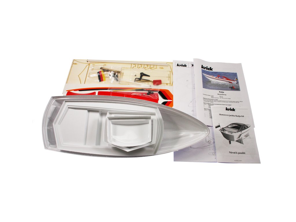 Stavebnice RC modelu elegantní čtyřsedadlové motorové jachty Katja, je určena pro začátečínající lodní modeláře. Obsahuje 7 plastových dílů, dřevěné díly na stojánek, motorové lože a pro uložení elektroniky. V balení je lodní šroub s hřídelí, kormidlo, volant, vlajka, samolepky a drobné příslušenství.