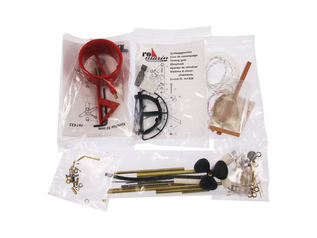 Během stavby narazíte v manuálu na doporučené příslušenství, které je obsaženo v sadě ROMARIN Přístavní remorkér Neptun - příslušenství. Součástí sady je vlajka DE, světlomet, LED červená, zelená a 10 ks bílé, záchranné kruhy, žebříky, vazníky, kotvu, oranž. bak, mozazné a hliníkové díly jako řetízek, trubičky, zábradlí, kladky apod. a 15 ks pneumatik na bok trupu. Lze pouze doporučit zakoupení této sady i se stavebnicí modelu.