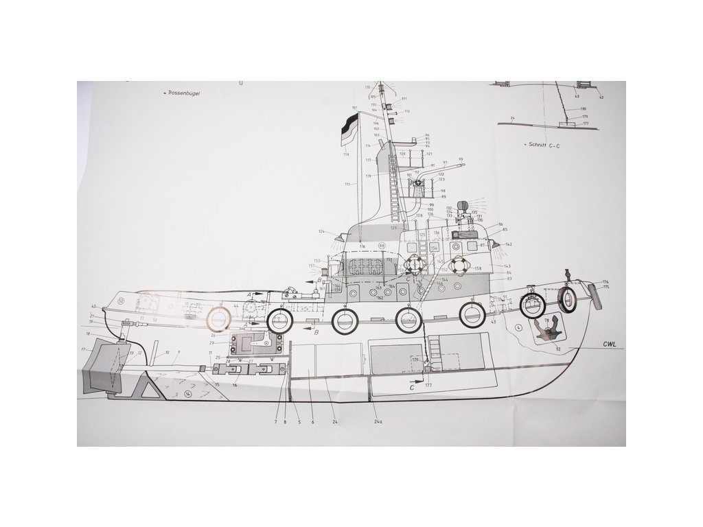 Set obsahuje kompletní sadu výkresové dokumentace modelu v měřítku 1:1 s obrázky jednotlivých detailů. Na výkrese jsou v měřítku nakresleny montážní sestavy, jejich kompletace a to včetně stěžňů a ráhen a způsob vázání lanoví. Vícejazyčný postup stavby rámcově upravuje logické sestavení jednotlivých komponentů.