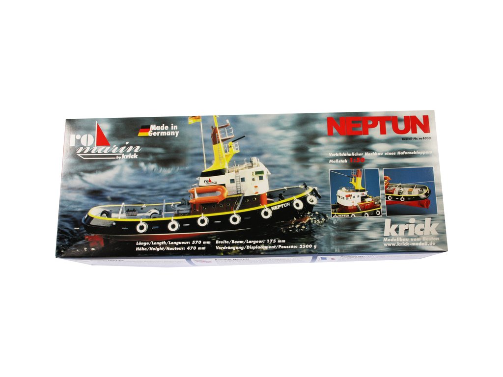 Stavebnice RC modelu lodi na dálkové ovládání od firmy ROMARIN, přístavní remorkér Neptun kit. Vzorem modelu vlečného člunu v měřítku 1:50 byl člun Bugsier Series v Hamburku. Obsahuje plastové díly trupu a paluby a interiéru, dřevěné součásti, výkres, lodní šroub s tunelem, maketové díly a drobné stavební příslušenství.