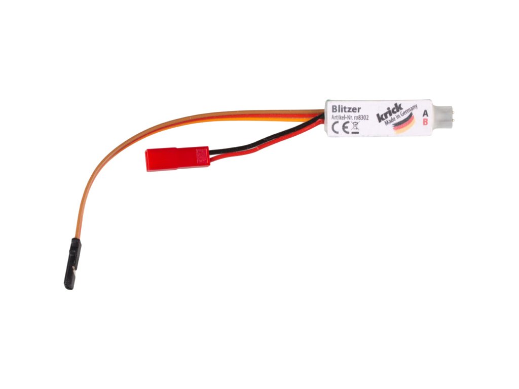 Světelný zábleskový modul vhodný pro připojení k LED i jiným osvětlením. Rychlost záblesků může být vypnuta, zapnuta, nebo ji můžete regulovat na proporcionálním kanále. Tento modul je vhodný pro připojení k přijímači.