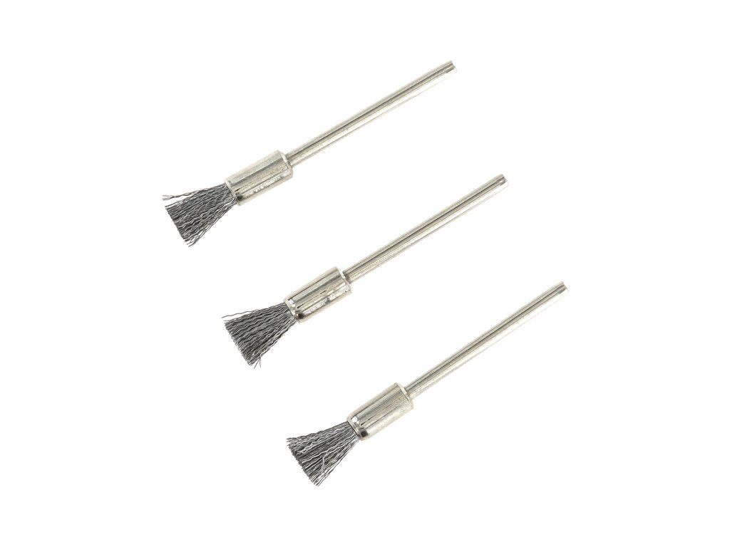Rotacraft stopkový drátěný kartáč ocelový (3ks v balení) je určen pro šetrné čištění kovu, plastu, skla, keramiky, kamene, opravy apod. Stopka do kleštiny 2,35mm, průměr cca 5mm.